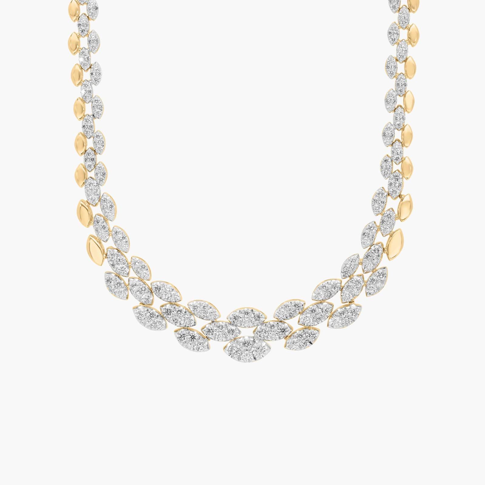 Pavé Set Fluid Diamond Necklace with Round Cut Diamonds in 14K Yellow Gold