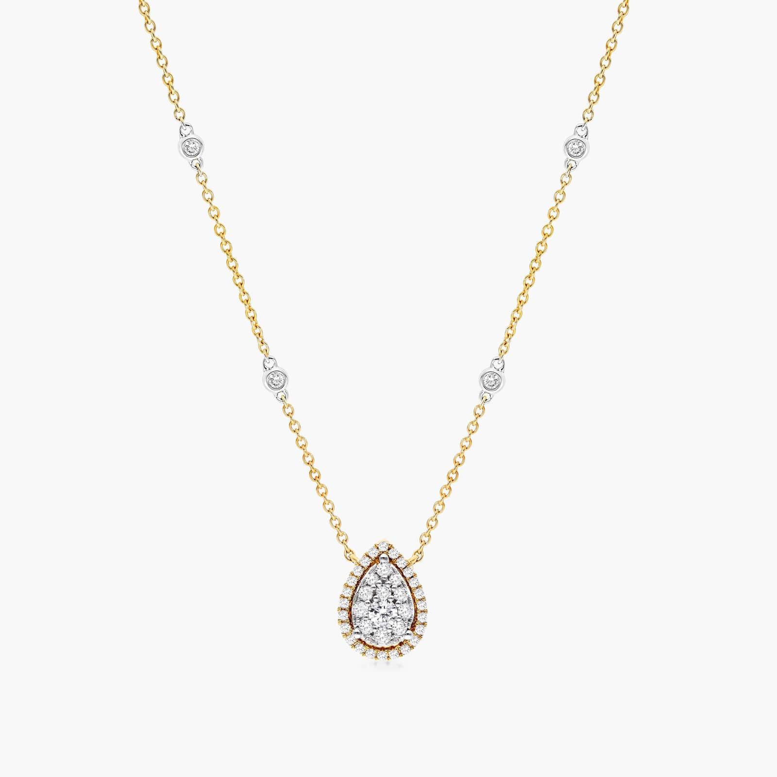 Pear Halo Cluster Diamond Necklace In 14K Yellow Gold