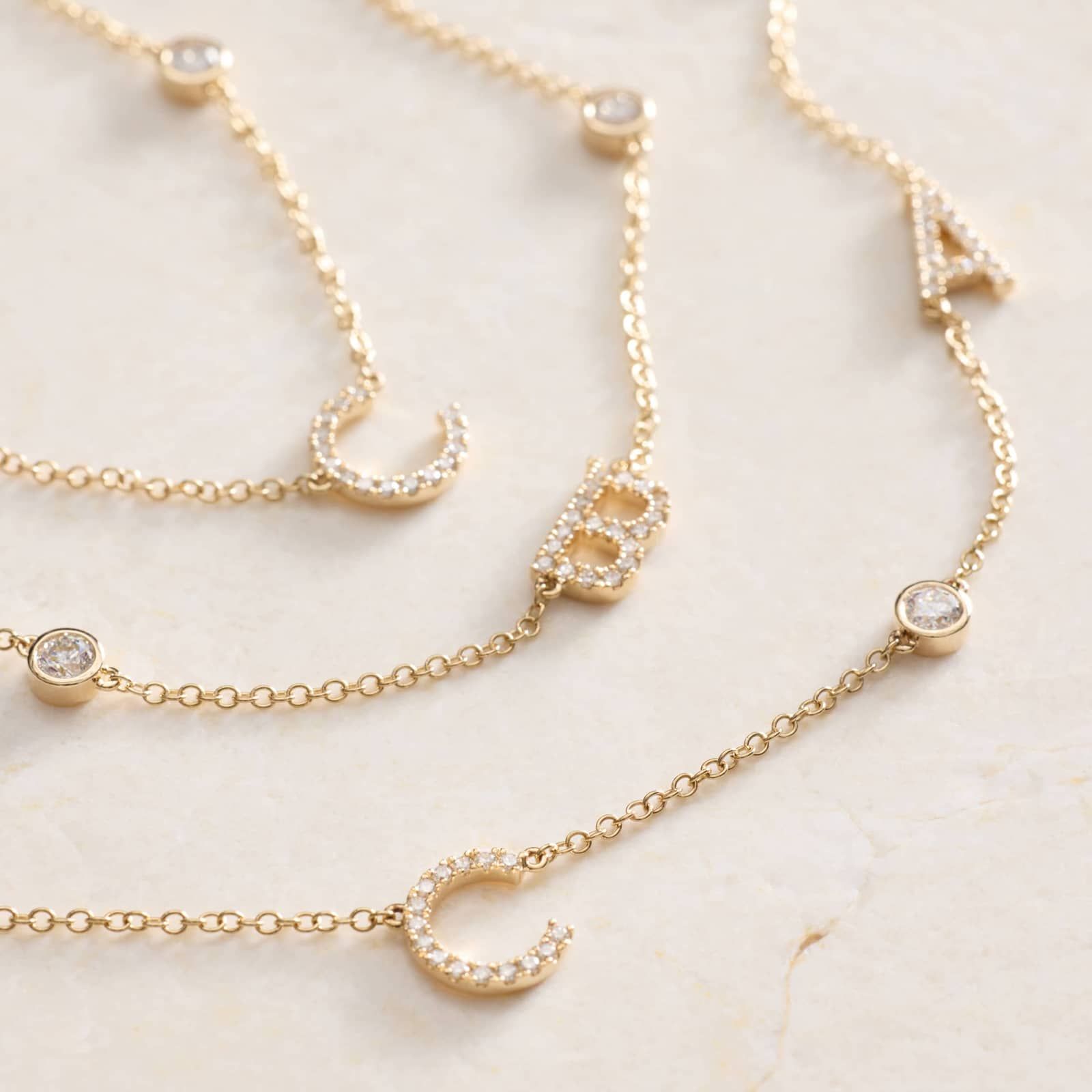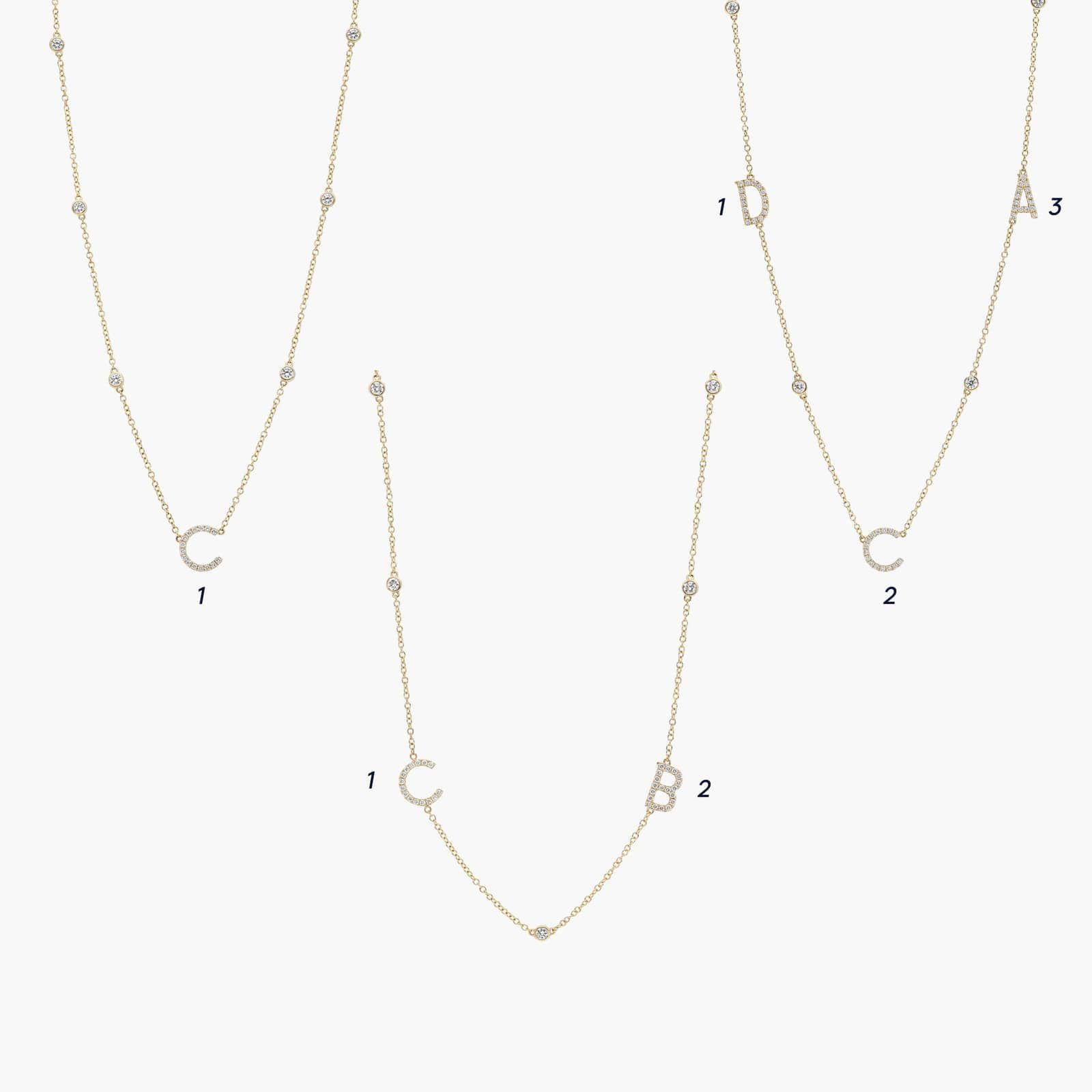 Keep what's most important close to your heart with this lab-grown diamond initial necklace. This personalized necklace features 14k yellow gold design and three initials of your choice. Pick initials that represent what you cherish most of all. With symbolic style and artisan details, this custom initial necklace is also a popular gift.