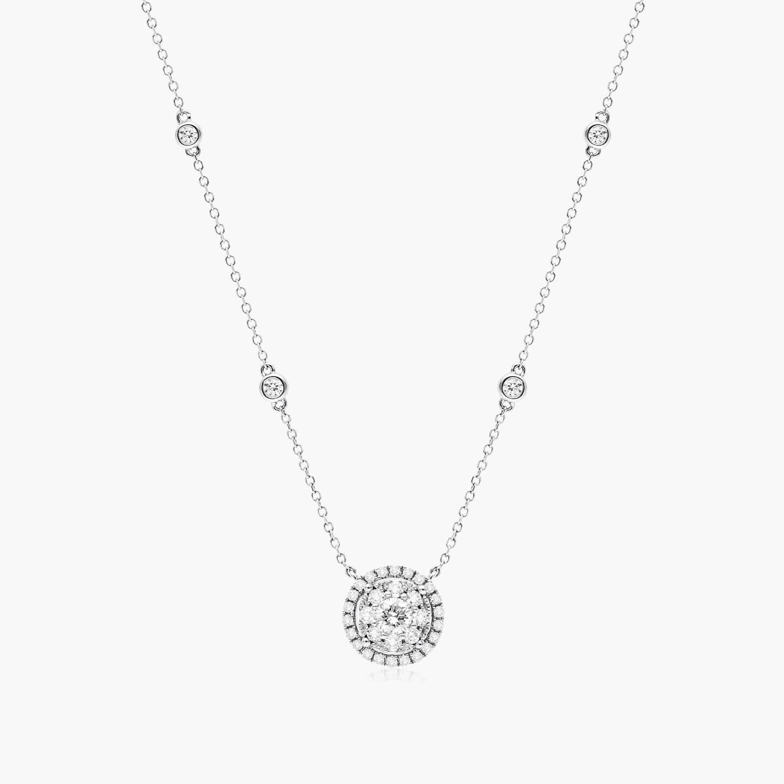 Round Halo Cluster Diamond Necklace In 14K White Gold By James Allen