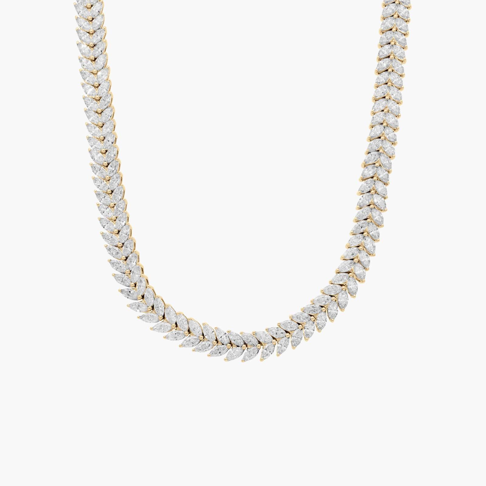 With two rows of marquise cut lab-grown diamonds, this tennis necklace is a standout piece. It's crafted in 14k yellow gold for strength and style. Add this brilliant necklace to your own collection or give it as a stunning gift.