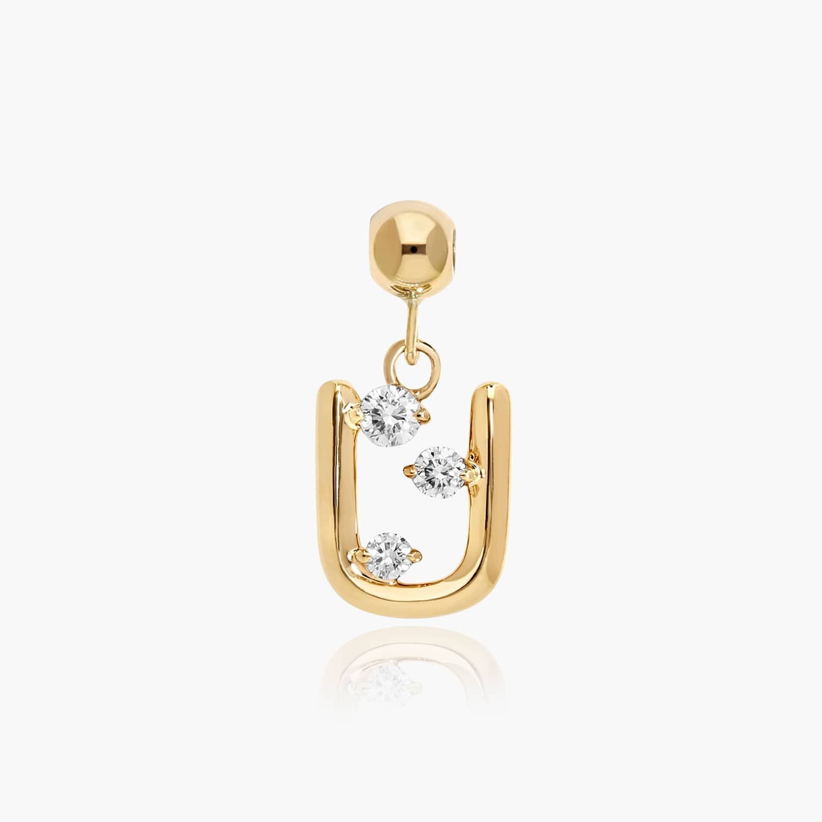 This initial is a true collectible charm! Featuring perfect diamond detail, this playful 14K Yellow Gold U Initial Lab Grown Diamond Charm makes a perfect personalized gift. Wear it alone to shine in the spotlight or wear multiple to spell out your favorite word. You're going to want one for every letter of the alphabet. Chain sold separately. Charms fit only on James Allen's Silicone Bead Slider Charm Chain