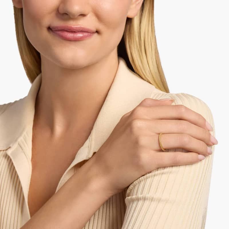 Pavé is a french word that means "to pave"—and pavé jewelry is literally paved in diamonds! Strong metal prongs placed methodically along the surface of the piece hold small diamonds in place, creating an effect of continuous sparkle. Pavé is often placed along the band of a ring, or around a center gemstone to create a halo—making the stone look larger.