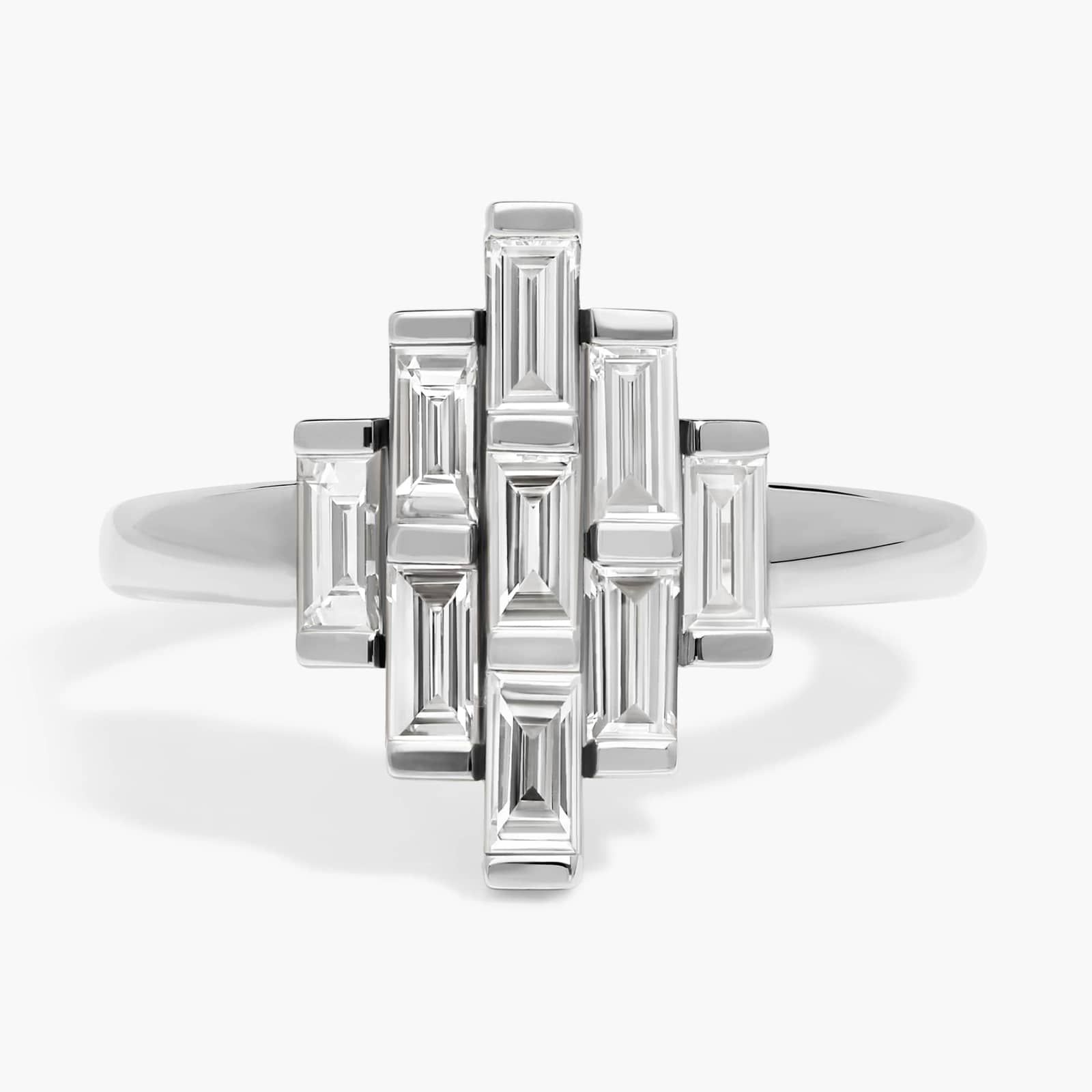 Baguette cut lab-grown diamonds are set in an eye-catching pattern to make this ring stand out. With gold design, it's a ring that's always in style.