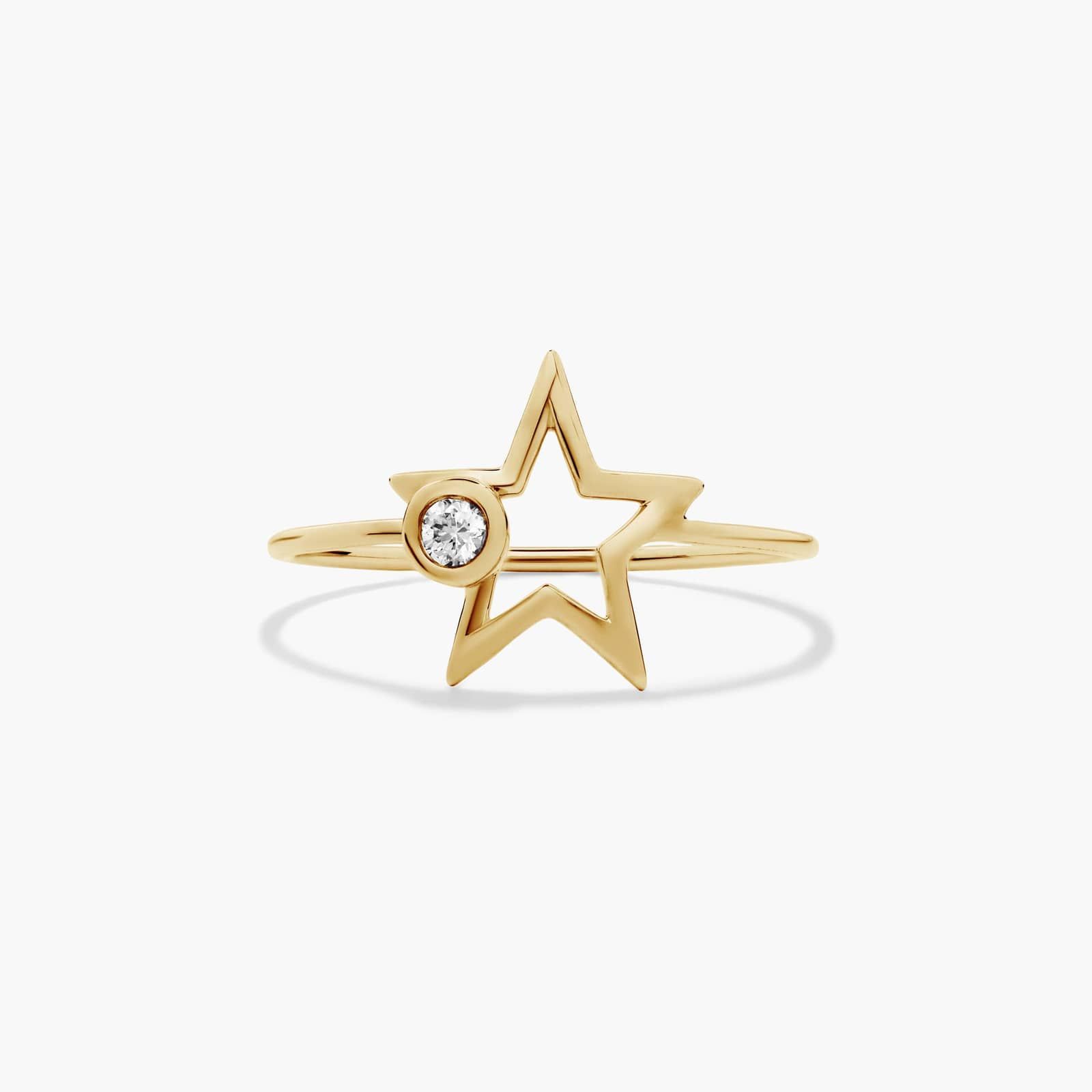 Featuring a dazzling diamond that accents a prominent star shape, this ring combines modern style with bold design. Set in beautiful yellow gold, this ring is a true must-have.