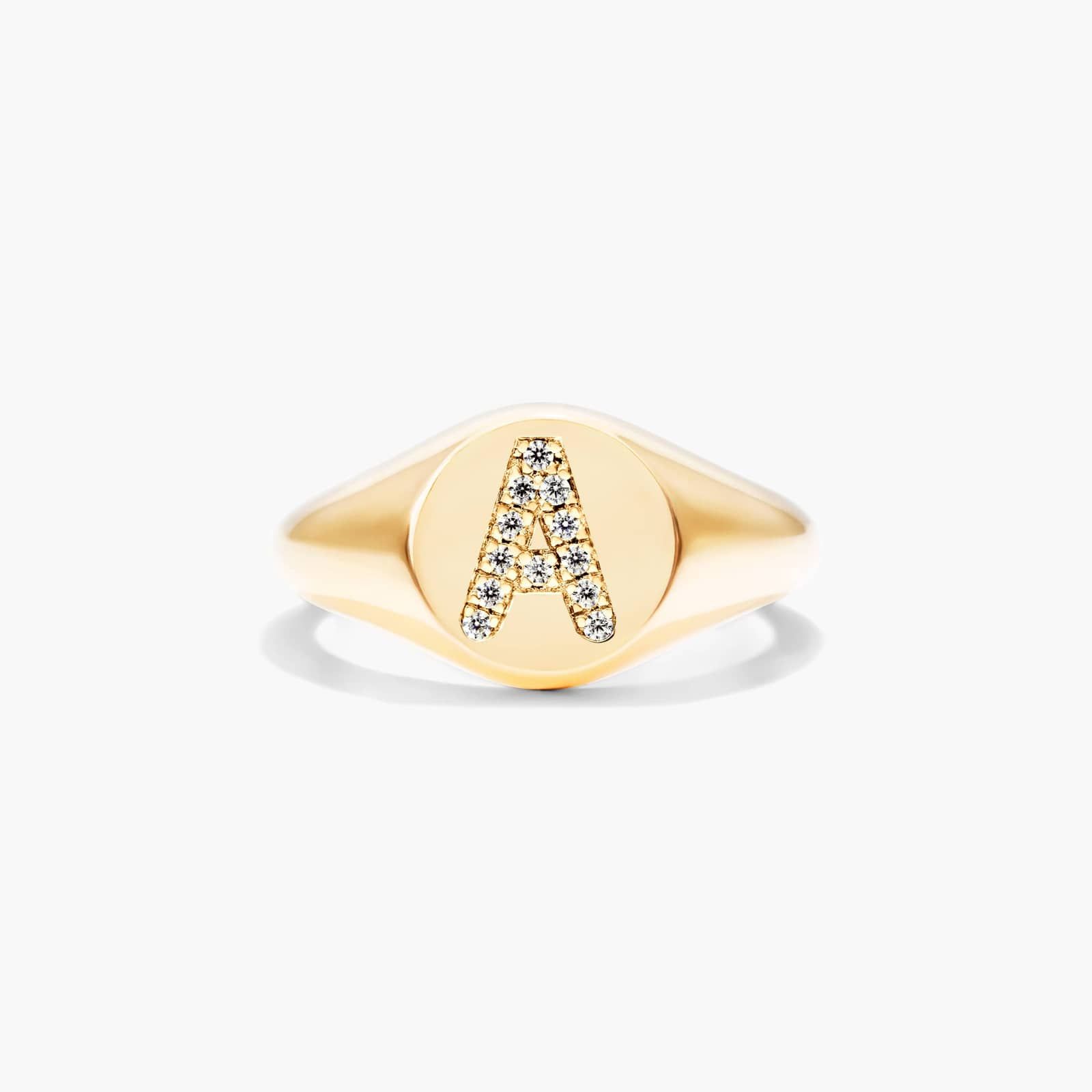 Diamond A Initial Signet Ring In 14K Yellow Gold