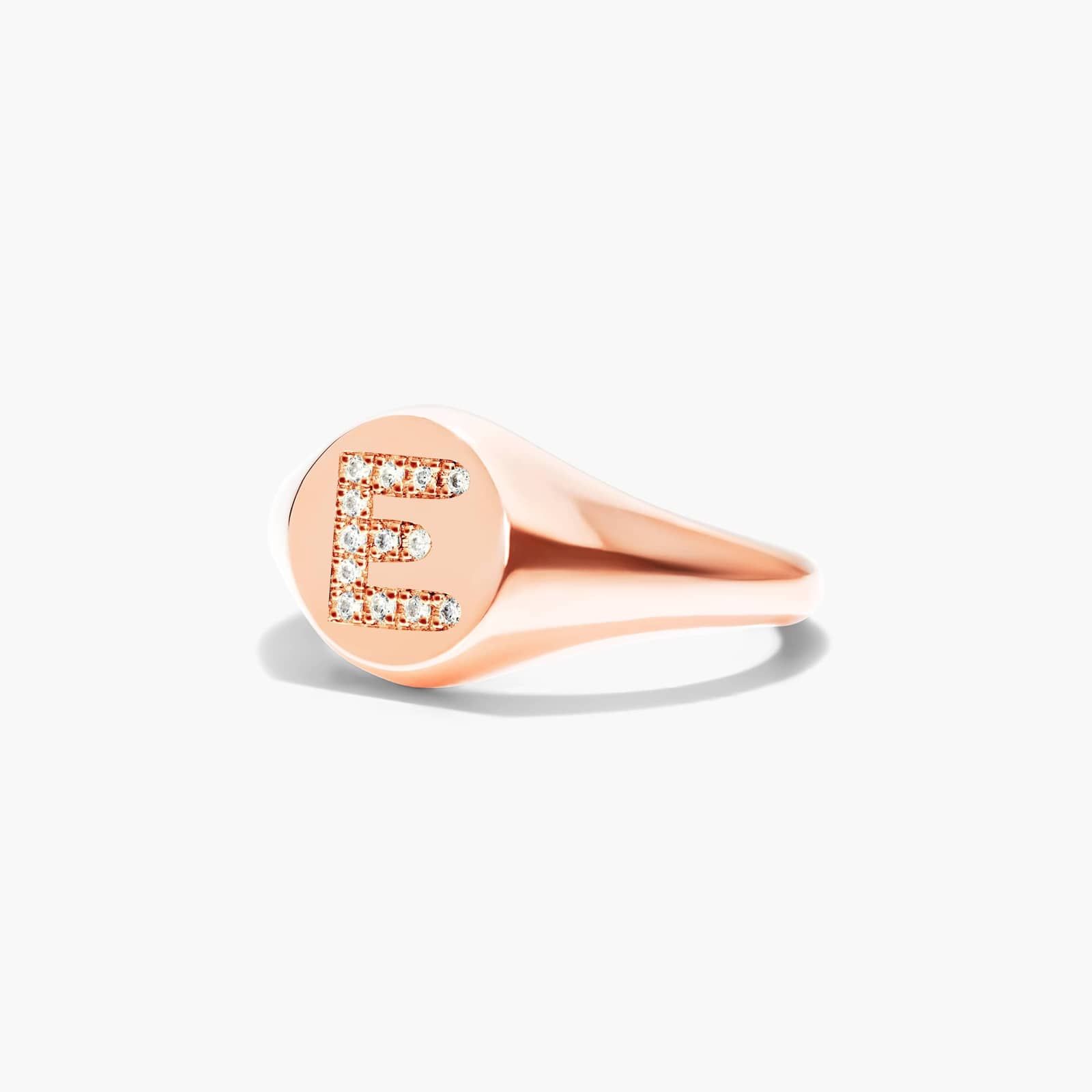 Diamond E Initial Signet Ring In 14K Rose Gold