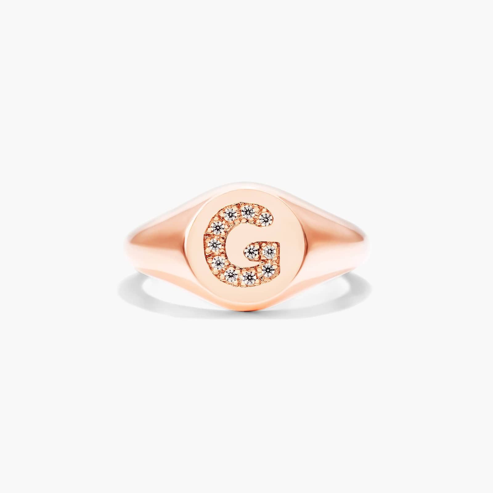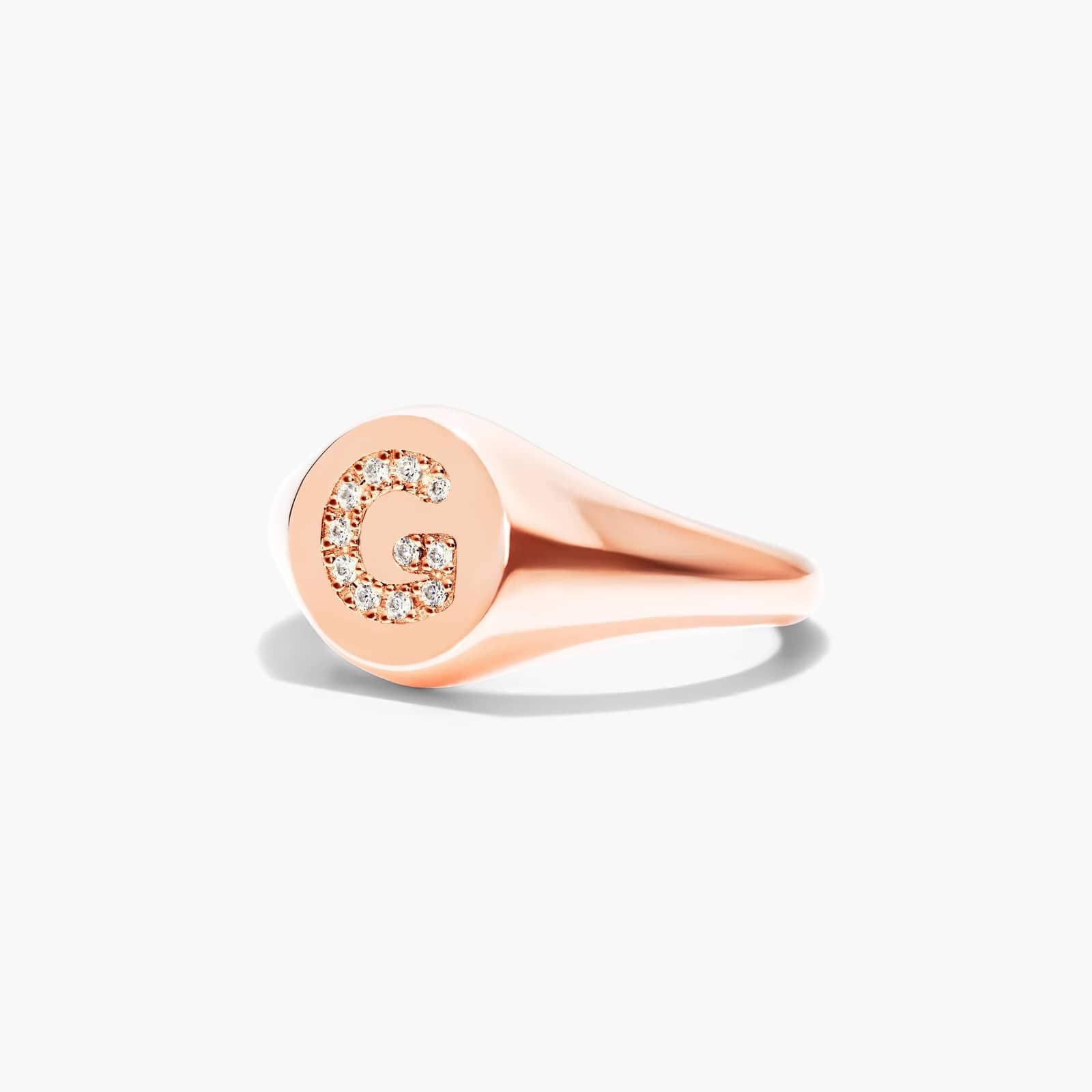 Diamond G Initial Signet Ring In 14K Rose Gold