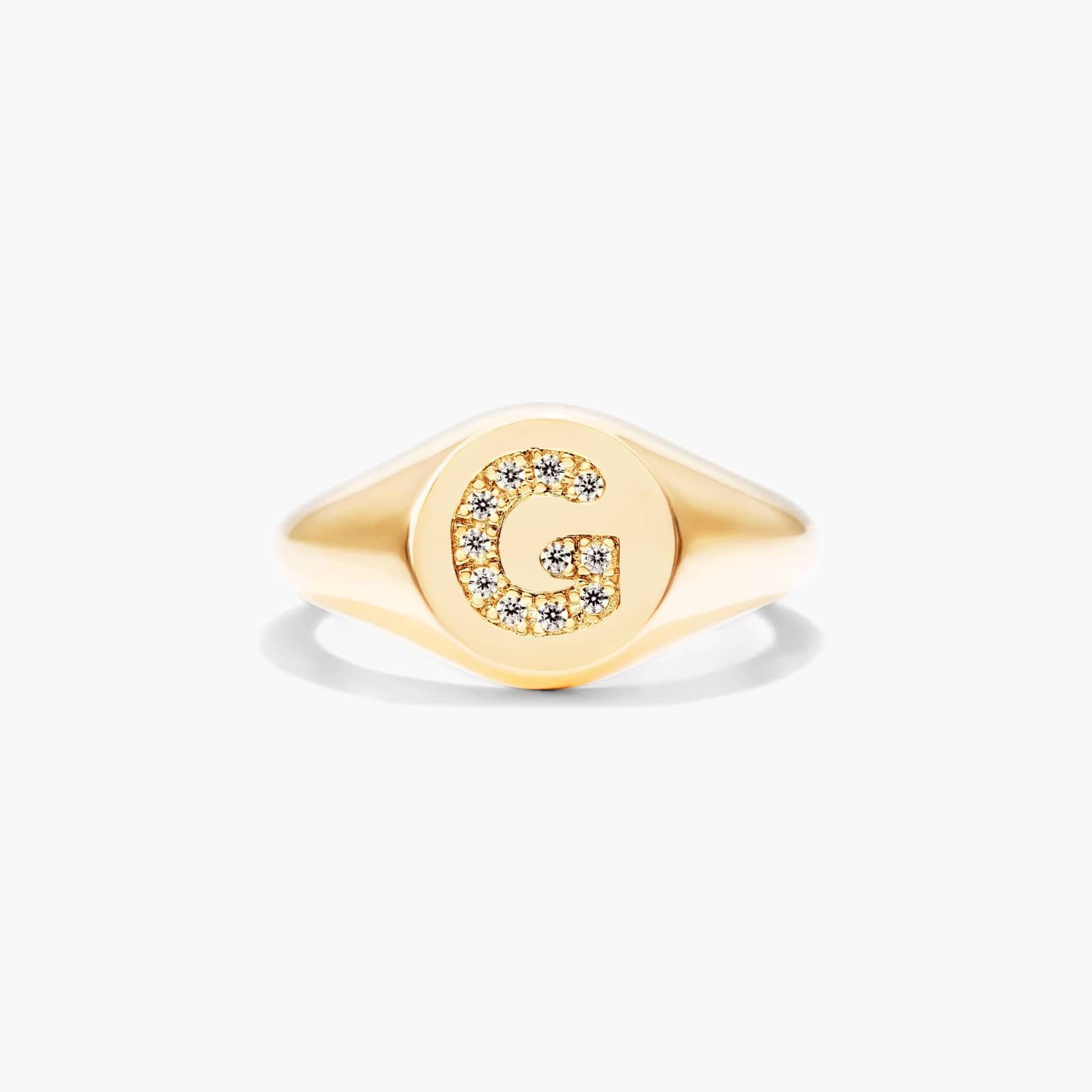 Diamond G Initial Signet Ring In 14K Yellow Gold
