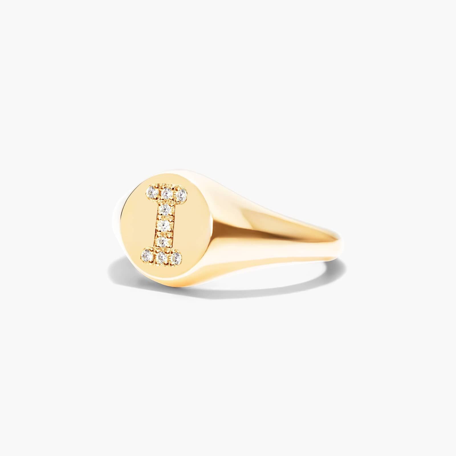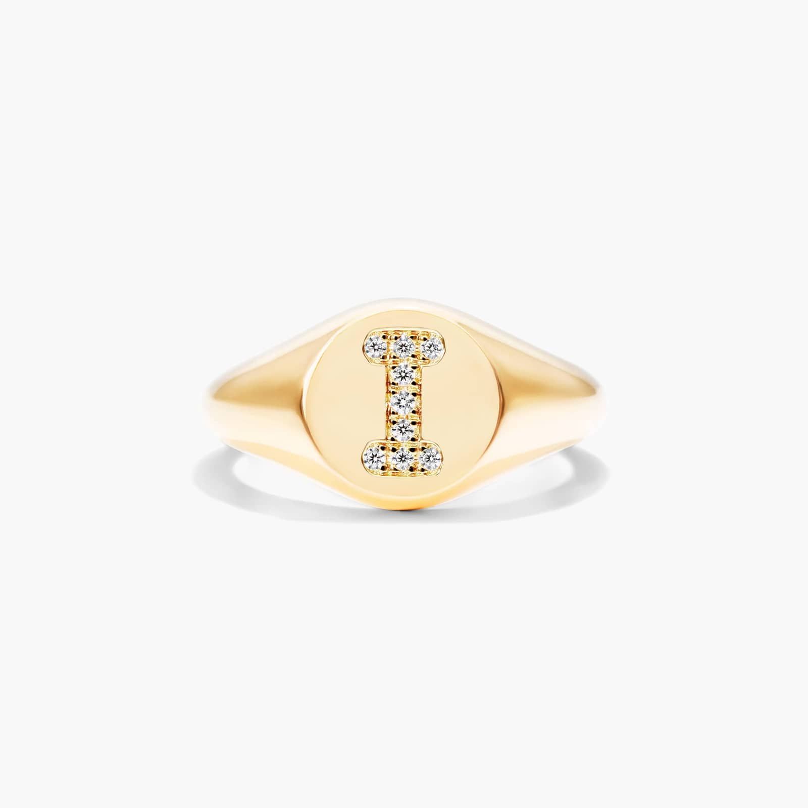 Diamond I Initial Signet Ring In 14K Yellow Gold