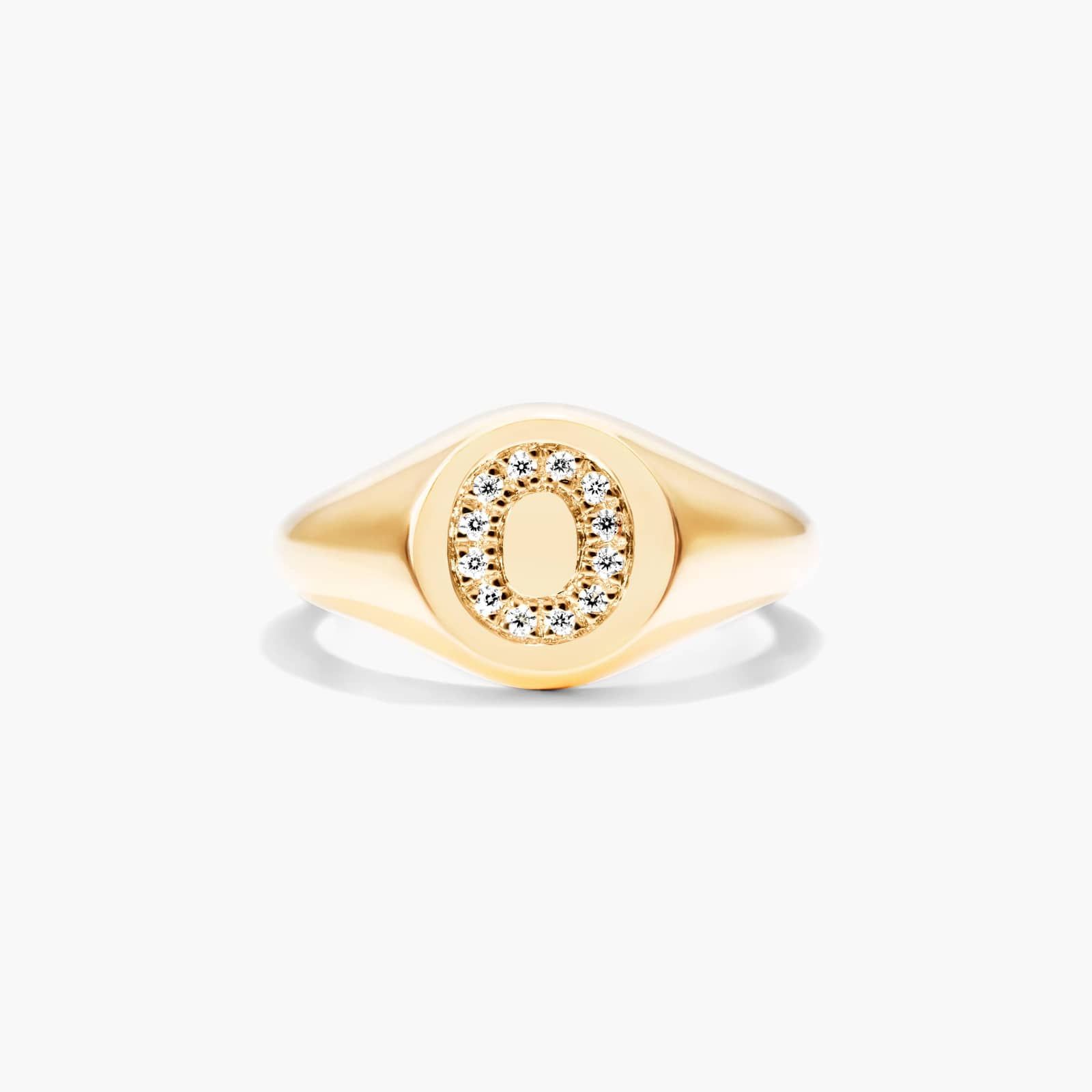 Diamond O Initial Signet Ring In 14K Yellow Gold