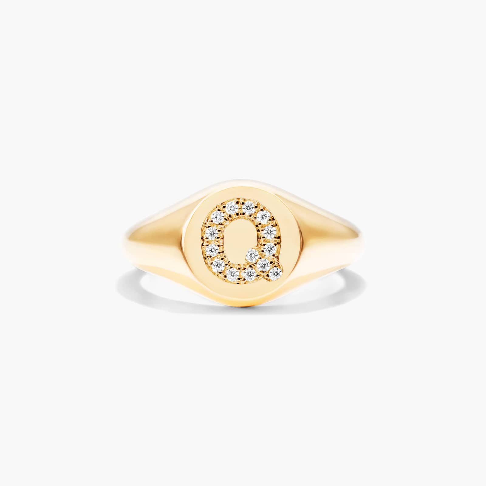 Diamond Q Initial Signet Ring In 14K Yellow Gold