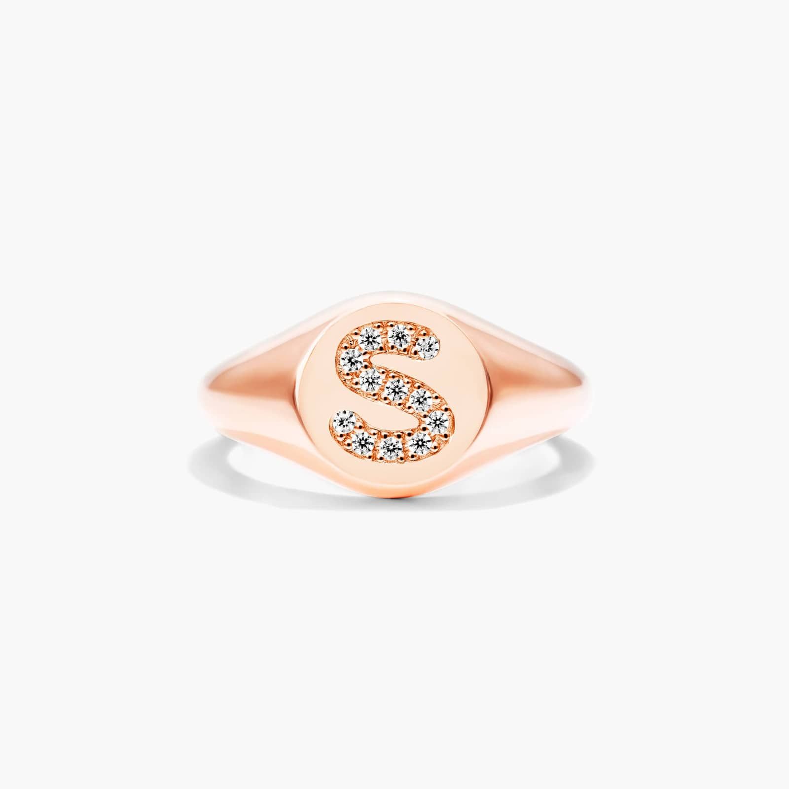 Diamond S Initial Signet Ring In 14K Rose Gold