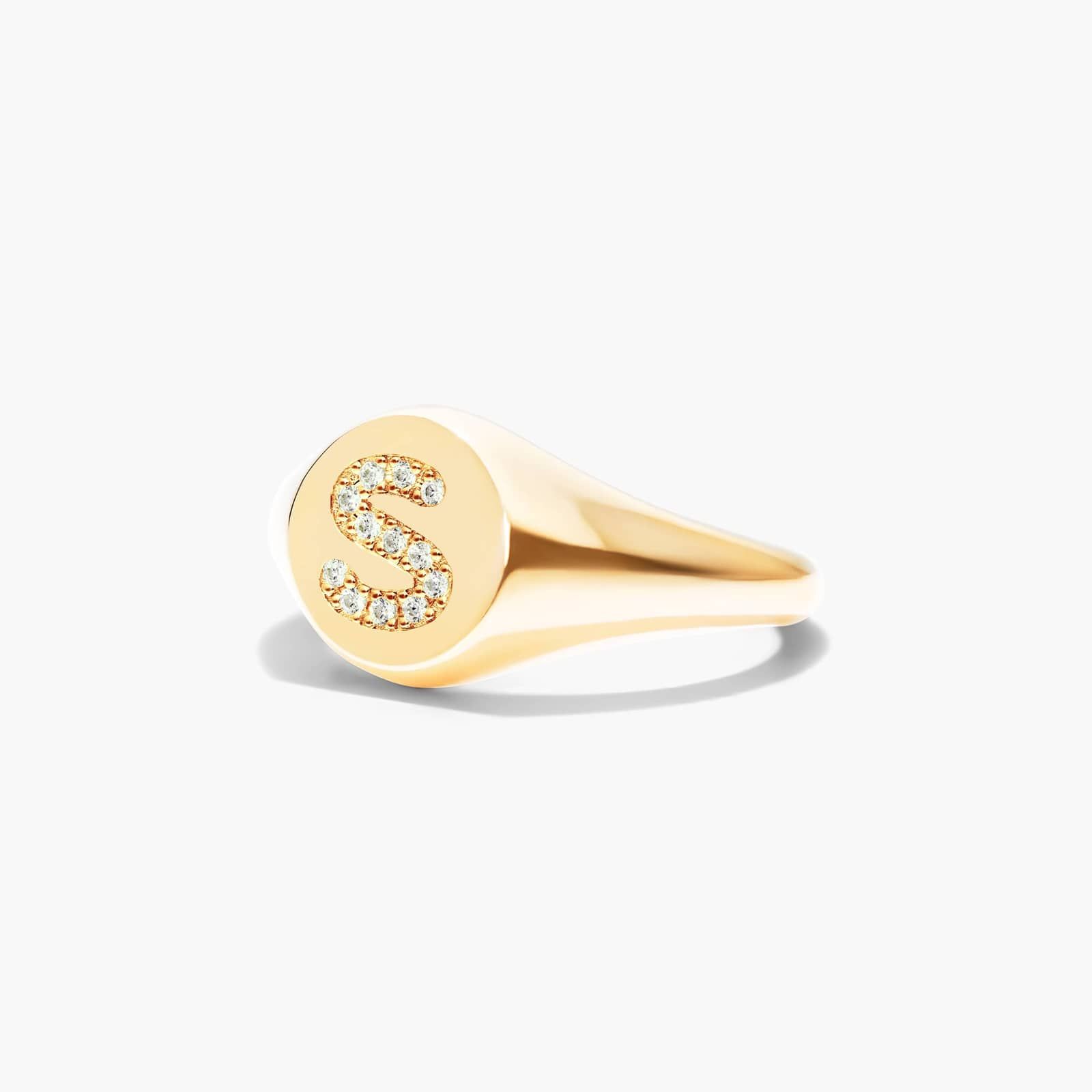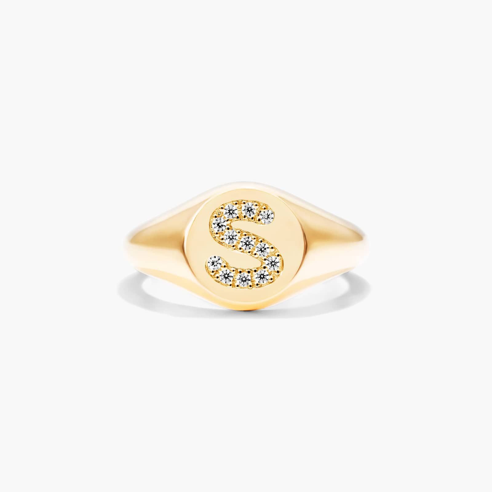 Diamond S Initial Signet Ring In 14K Yellow Gold