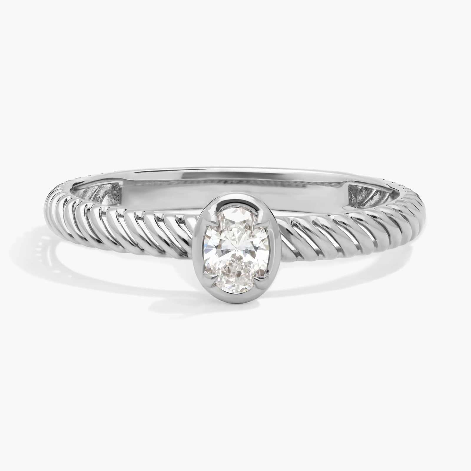 Diamond Solitaire Rope Ring with 0.2 CTW Oval Cut Lab-Grown Diamond in 14K White Gold