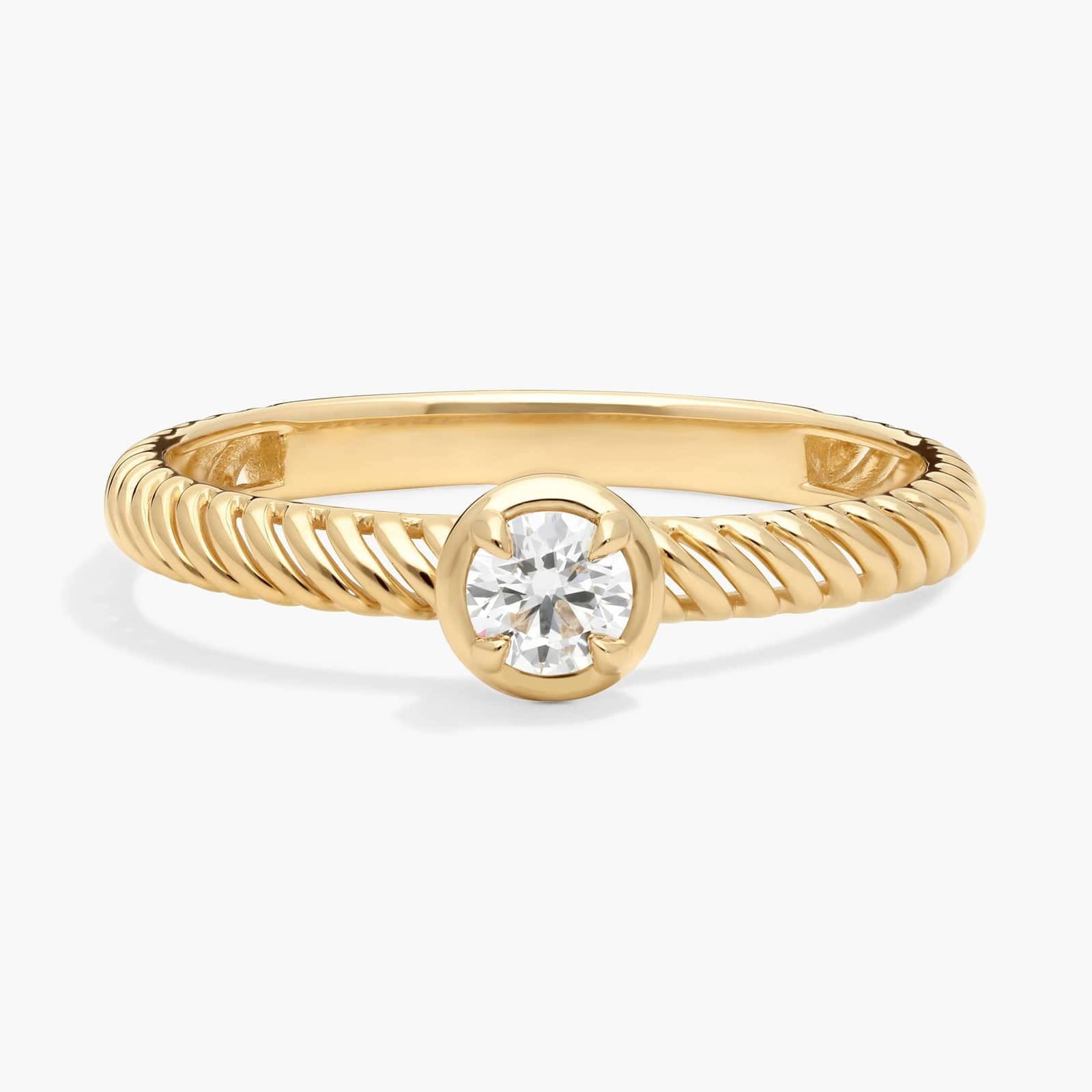 Diamond Solitaire Rope Ring with 0.2 CTW Round Cut Lab-Grown Diamond in 14K Yellow Gold