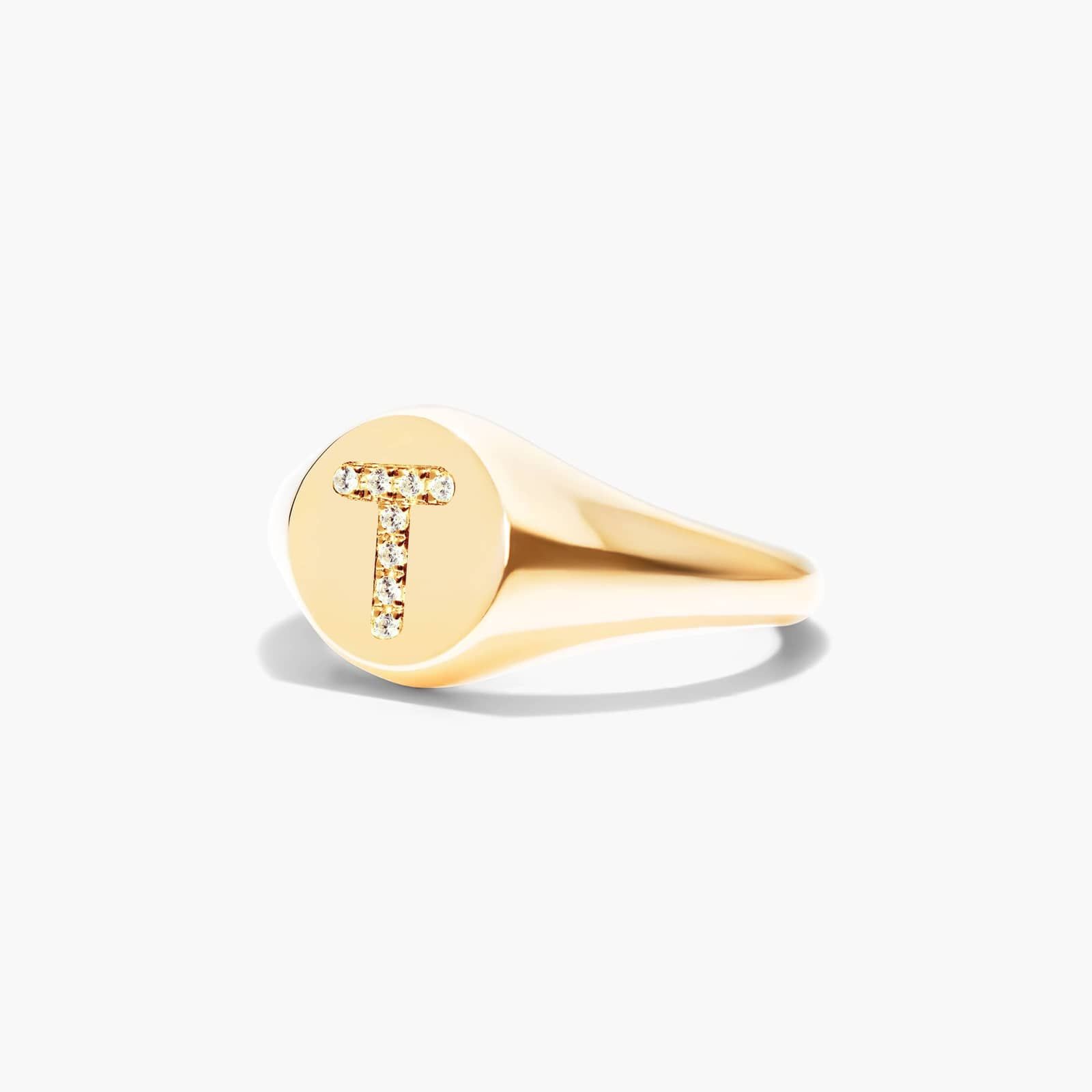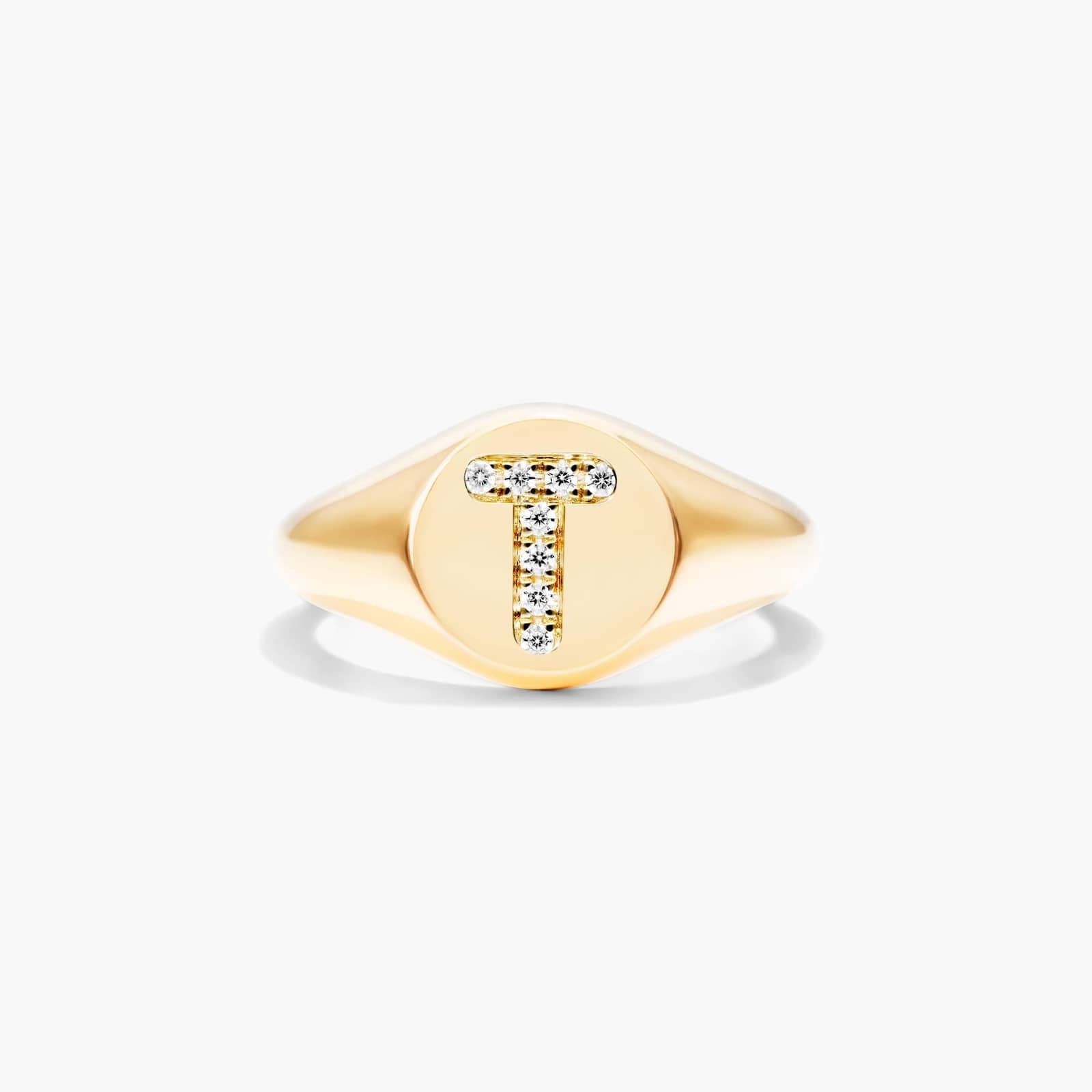 Diamond T Initial Signet Ring In 14K Yellow Gold