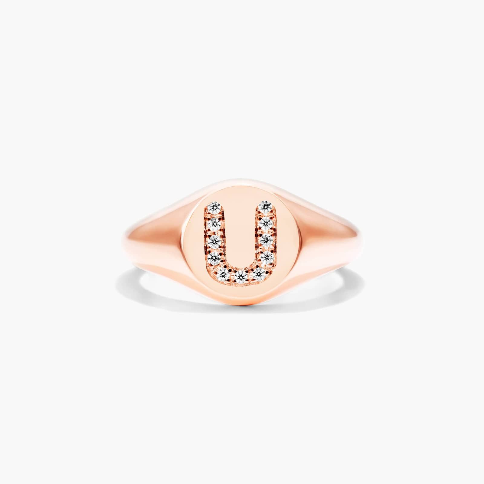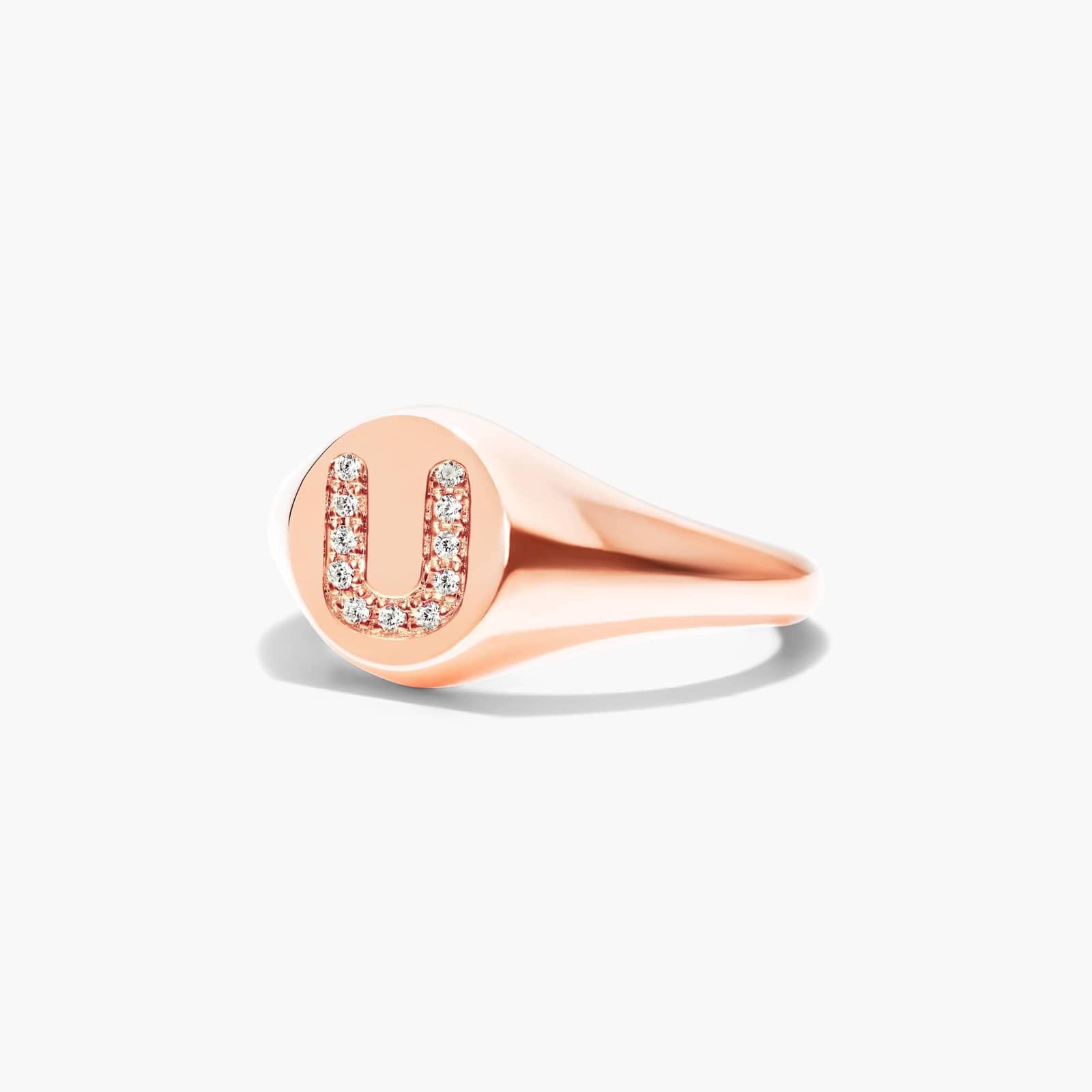 Diamond U Initial Signet Ring In 14K Rose Gold
