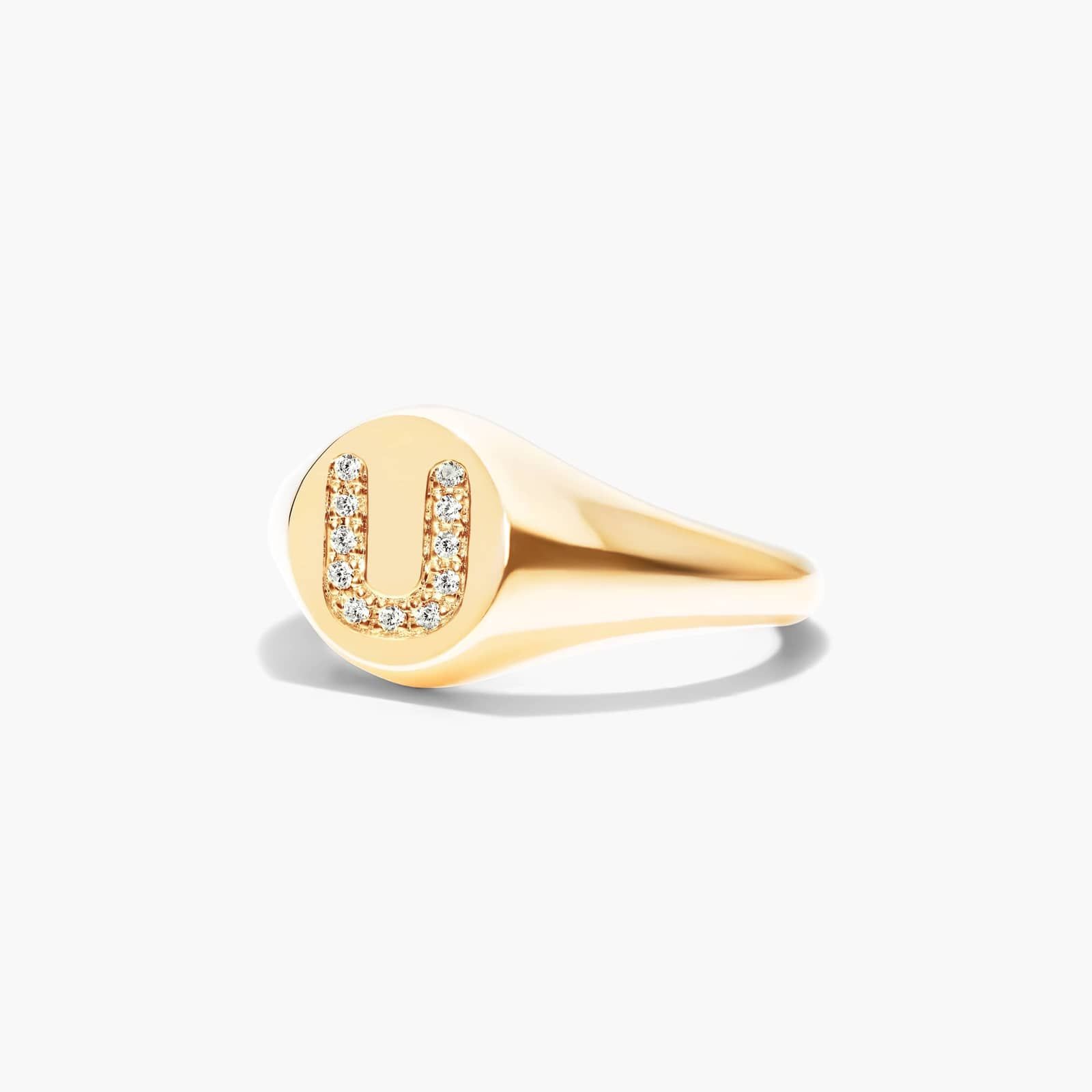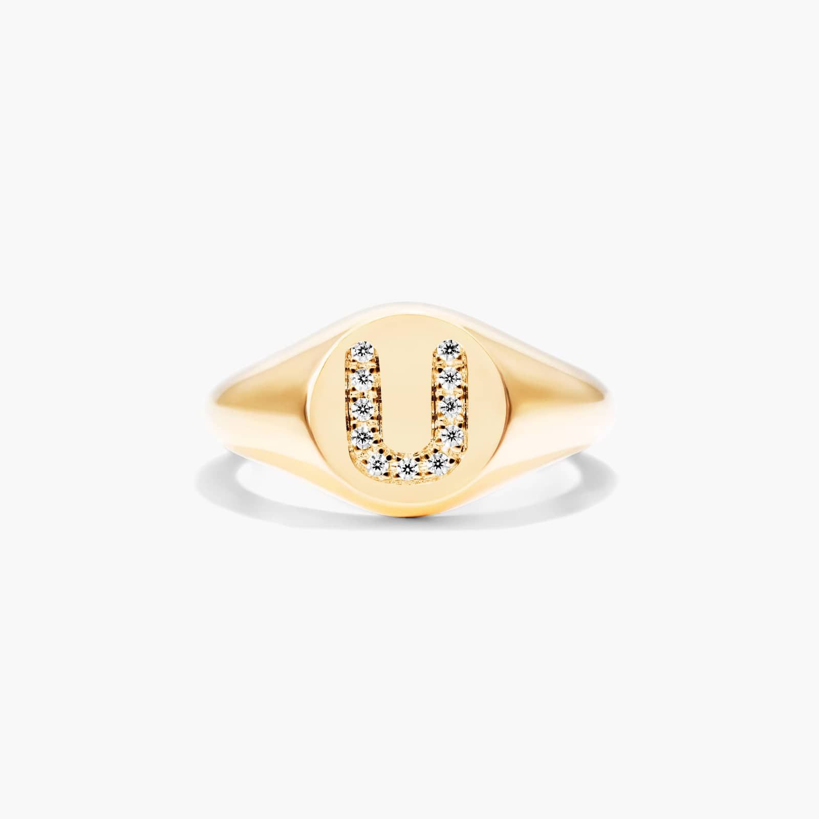 Diamond U Initial Signet Ring In 14K Yellow Gold
