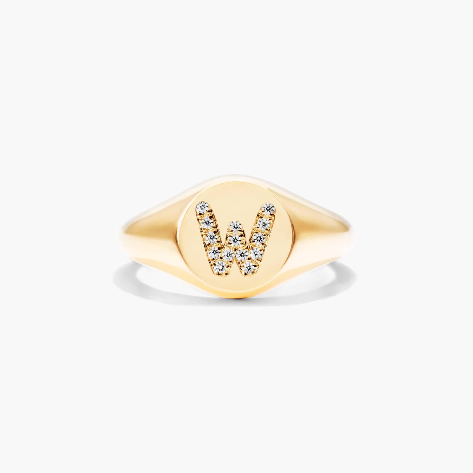 Diamond W Initial Signet Ring In 14K Yellow Gold