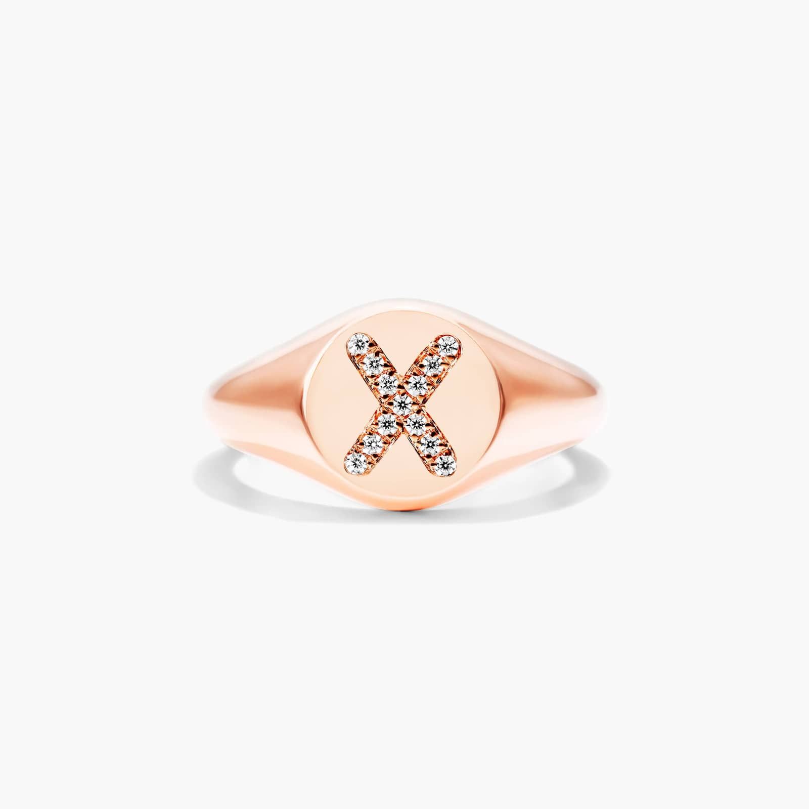 Diamond X Initial Signet Ring In 14K Rose Gold
