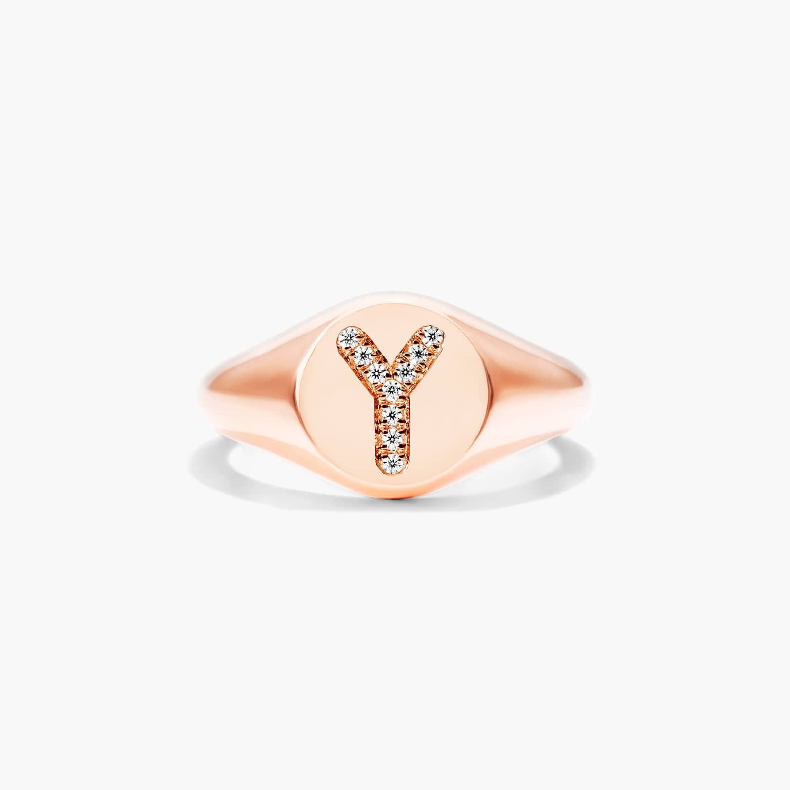 Diamond Y Initial Signet Ring In 14K Rose Gold