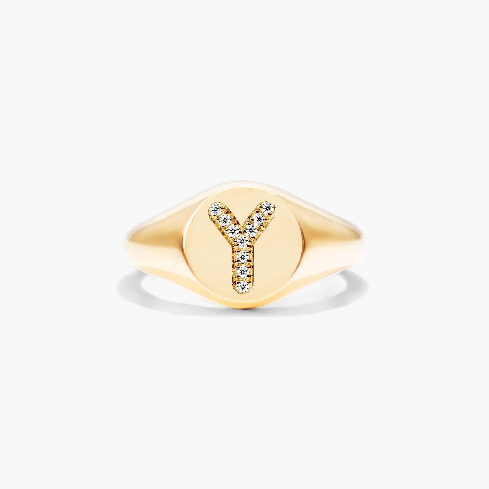 Diamond Y Initial Signet Ring In 14K Yellow Gold