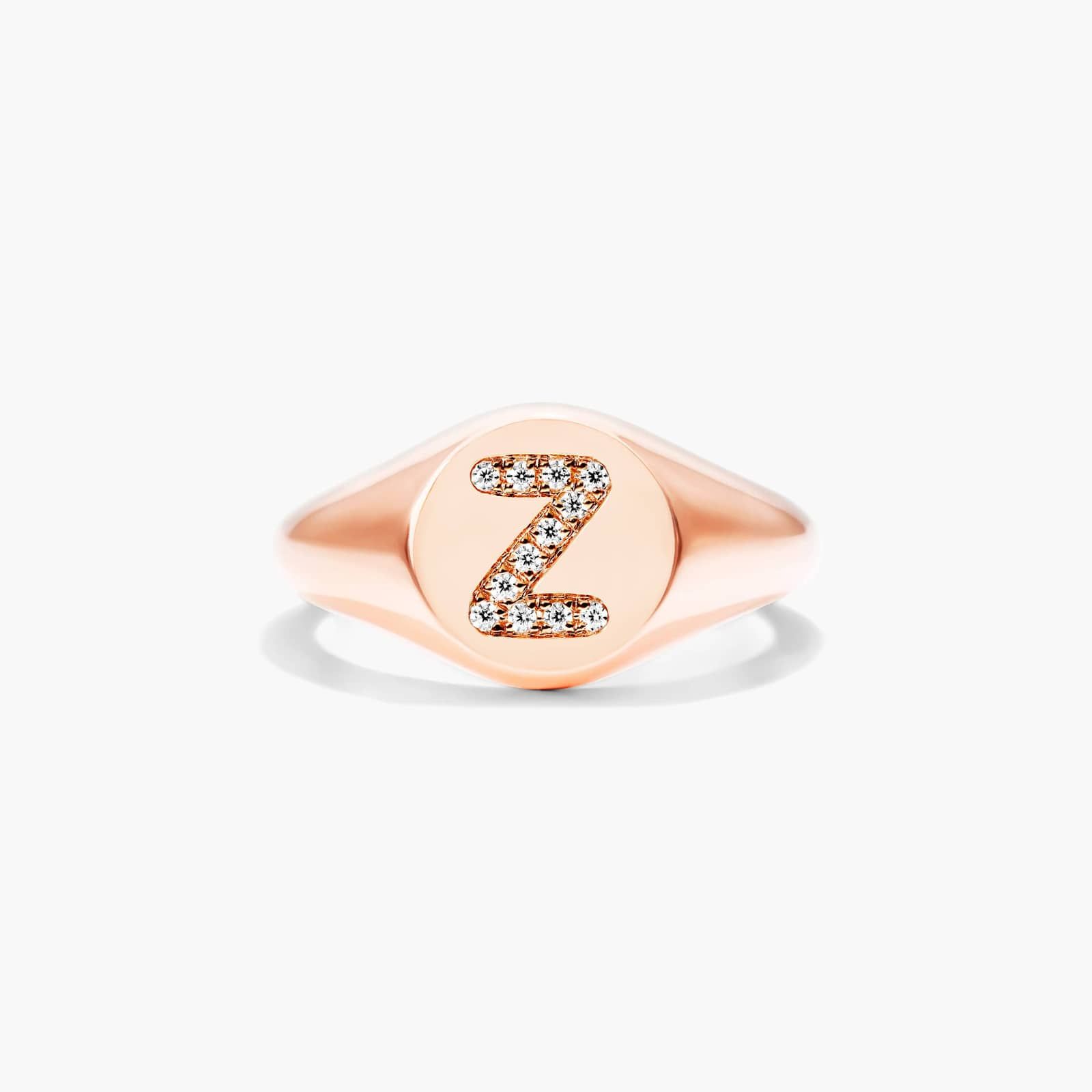 Diamond Z Initial Signet Ring In 14K Rose Gold