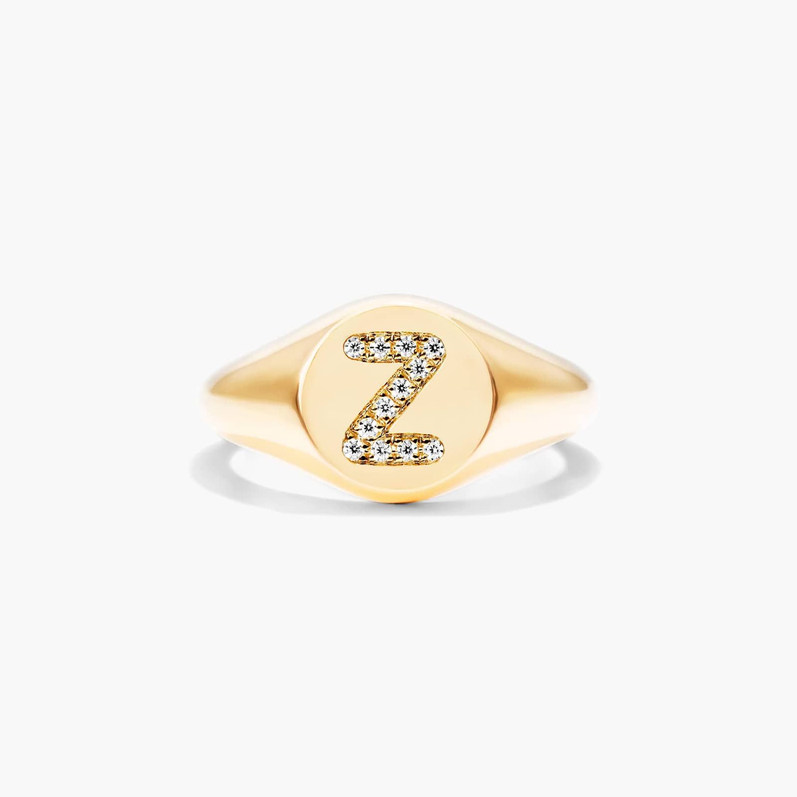 Diamond Z Initial Signet Ring In 14K Yellow Gold