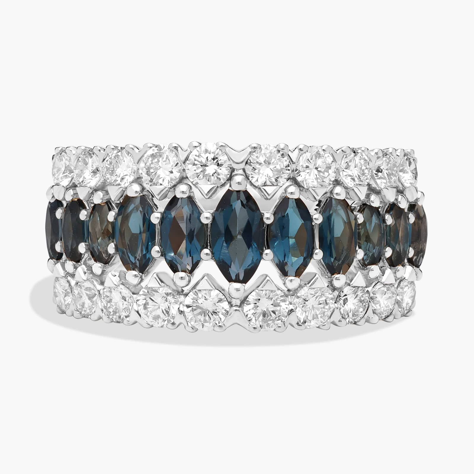 Marquise London Blue Topaz and Diamond Band in 14K White Gold