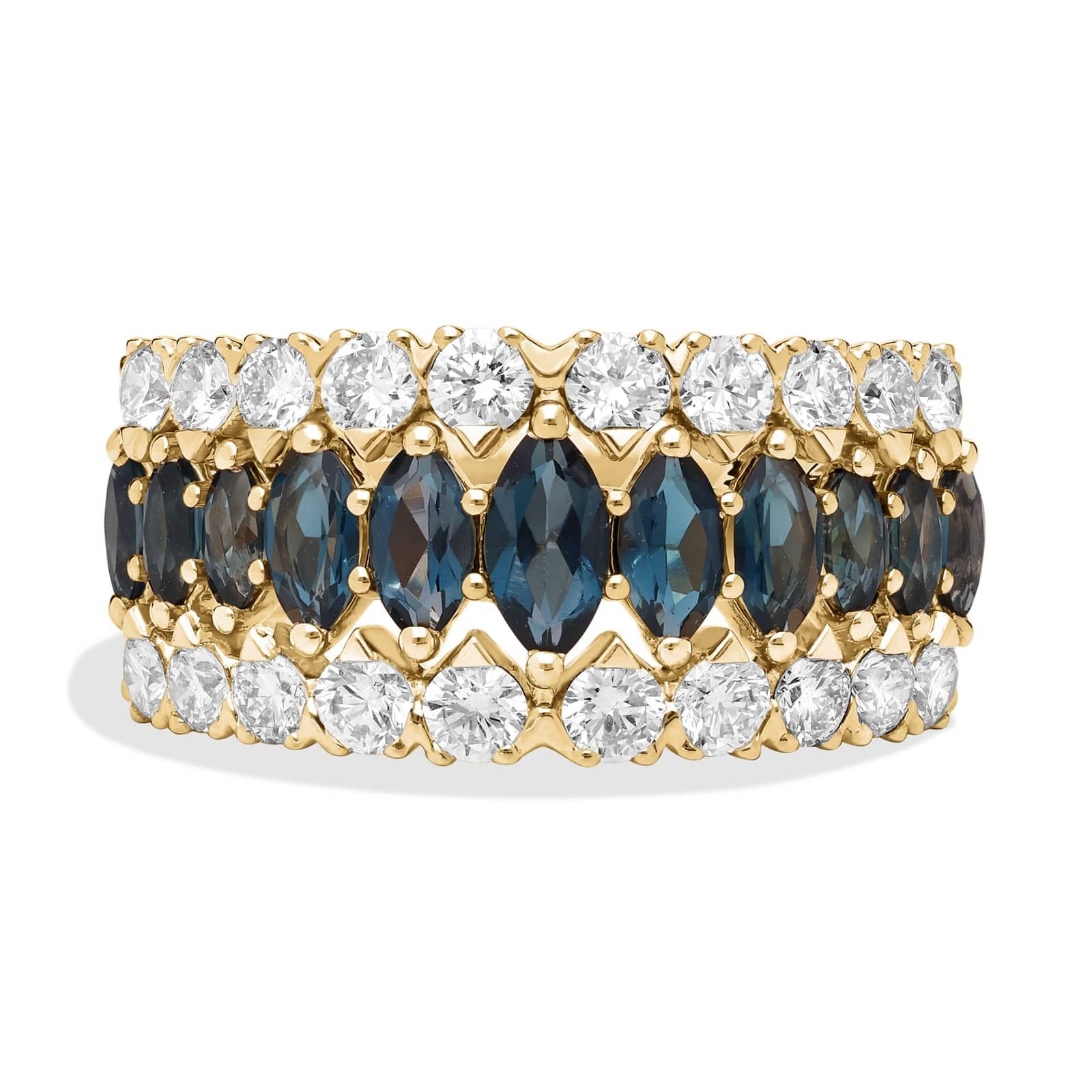 Marquise London Blue Topaz and Diamond Band in 14K Yellow Gold