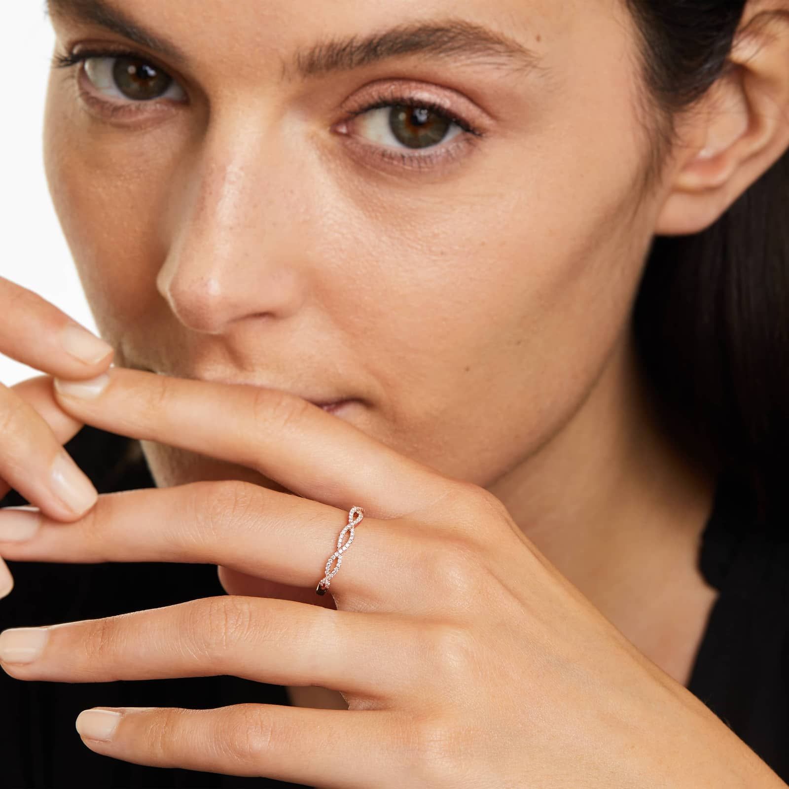 The infinity design is a timeless classic perfect for everyday wear, and the open weave lends added elegance to this petite design. Crafted in 14K gold, this piece is beautiful worn on its own or with other stackables for a trendier look.