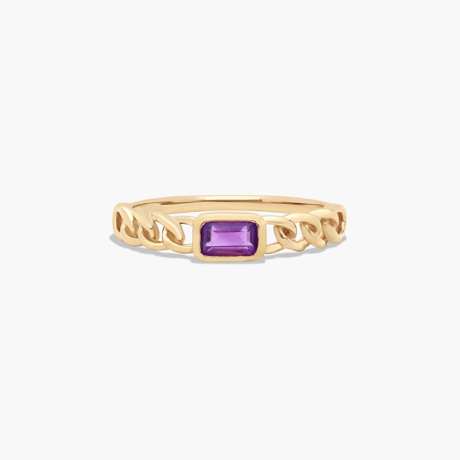The epitome of everyday elegance, this ring is as beautiful as it is easy to wear. Featuring a modern curb chain band, this gemstone ring shines bright on its own yet also looks beautiful when stacked with multiple rings. Warning, it's so stylish you'll never want to take it off!