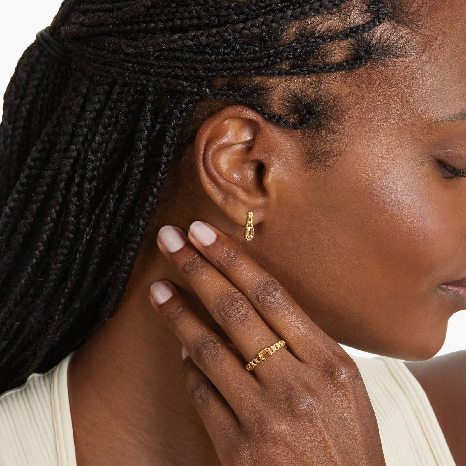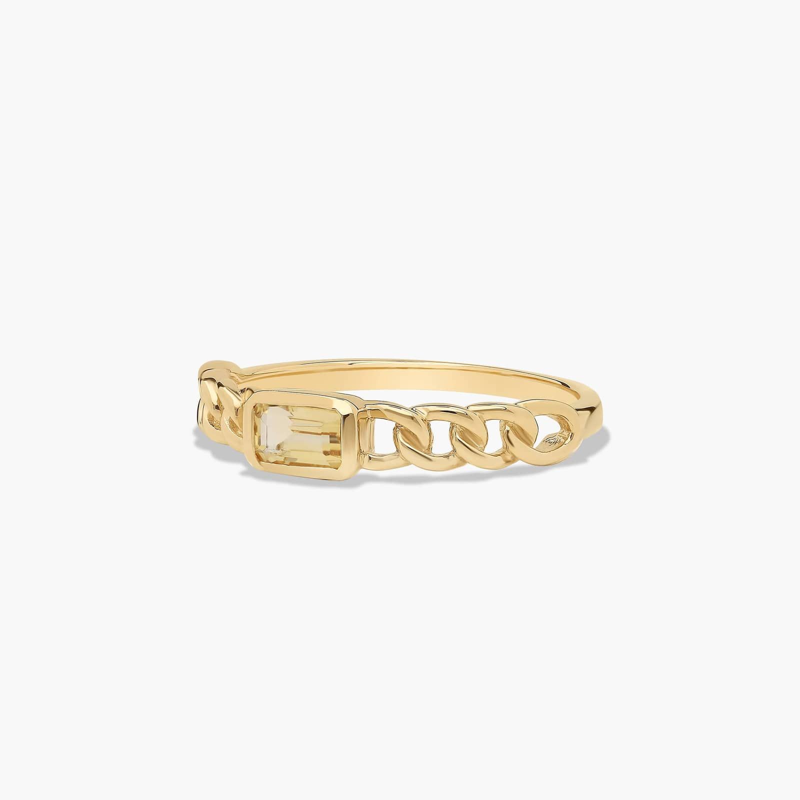 The epitome of everyday elegance, this ring is as beautiful as it is easy to wear. Featuring a modern curb chain band, this gemstone ring shines bright on its own yet also looks beautiful when stacked with multiple rings. Warning, it's so stylish you'll never want to take it off!
