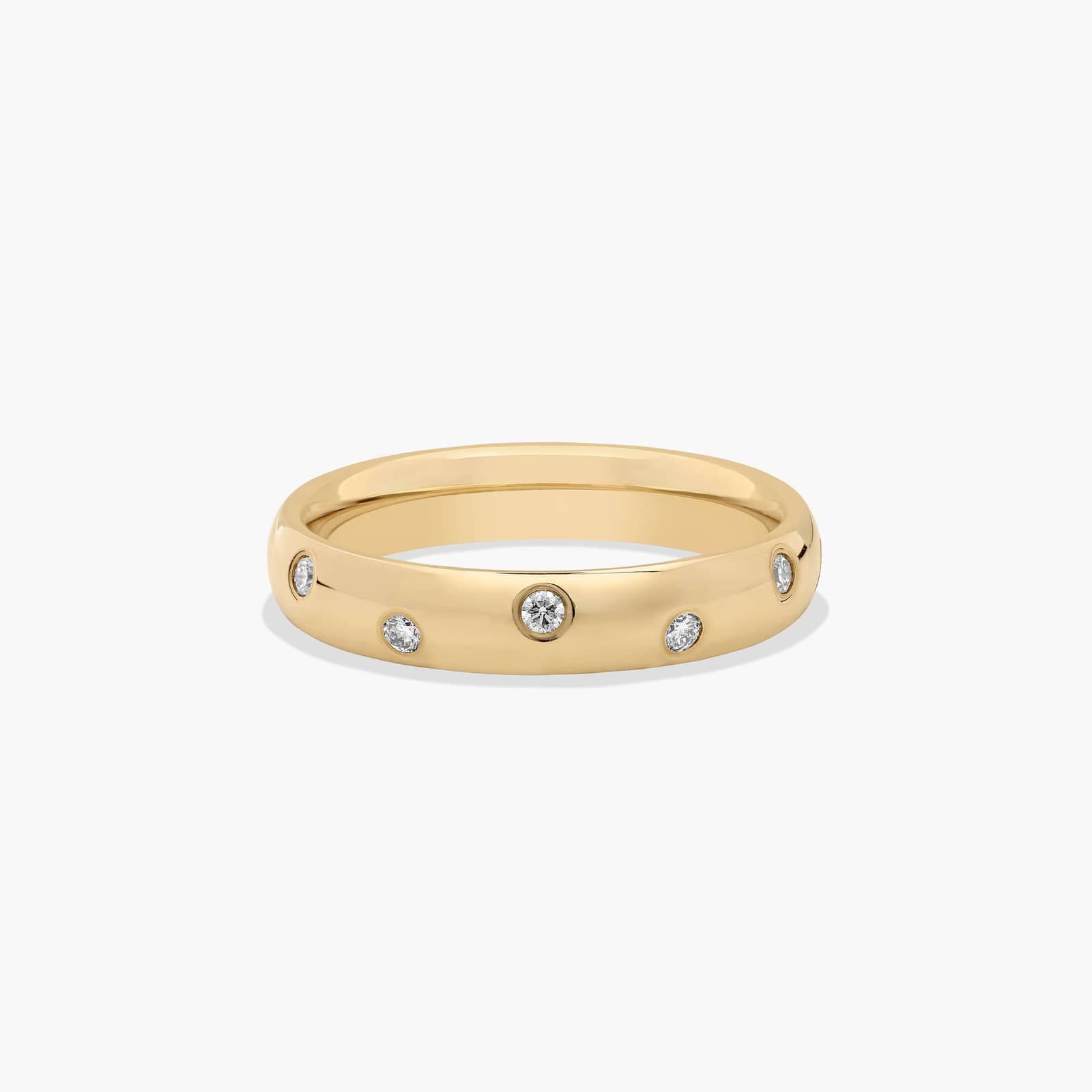 Bezel Set Zig-Zag Diamond Wedding Ring In 18K Yellow Gold (4.00mm)