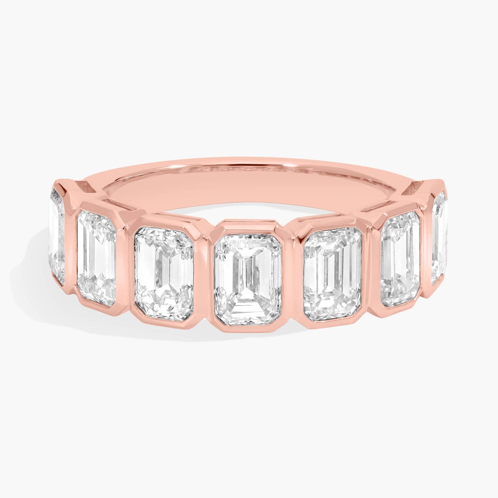 Seven sparkling emerald cut bezel set lab-grown diamonds adorn this anniversary ring, representing style and promise. Gift this 3 CTW lab-grown diamond and 14k rose gold ring to celebrate an anniversary or add it to your own collection for lasting shine.