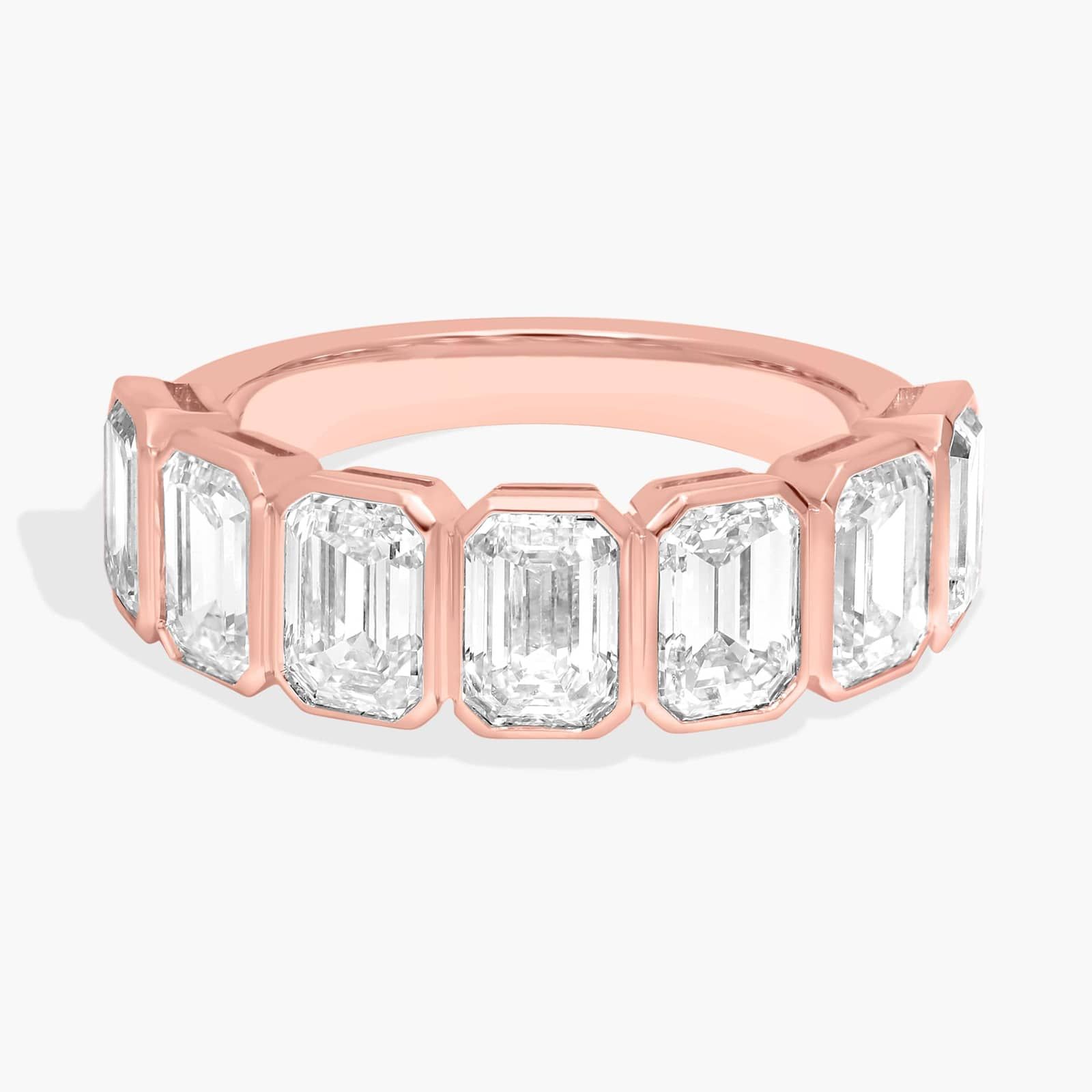 Seven Stone Bezel Anniversary Ring With 3.5 CTW Emerald Cut Diamonds in 14K Rose Gold (6.3mm)