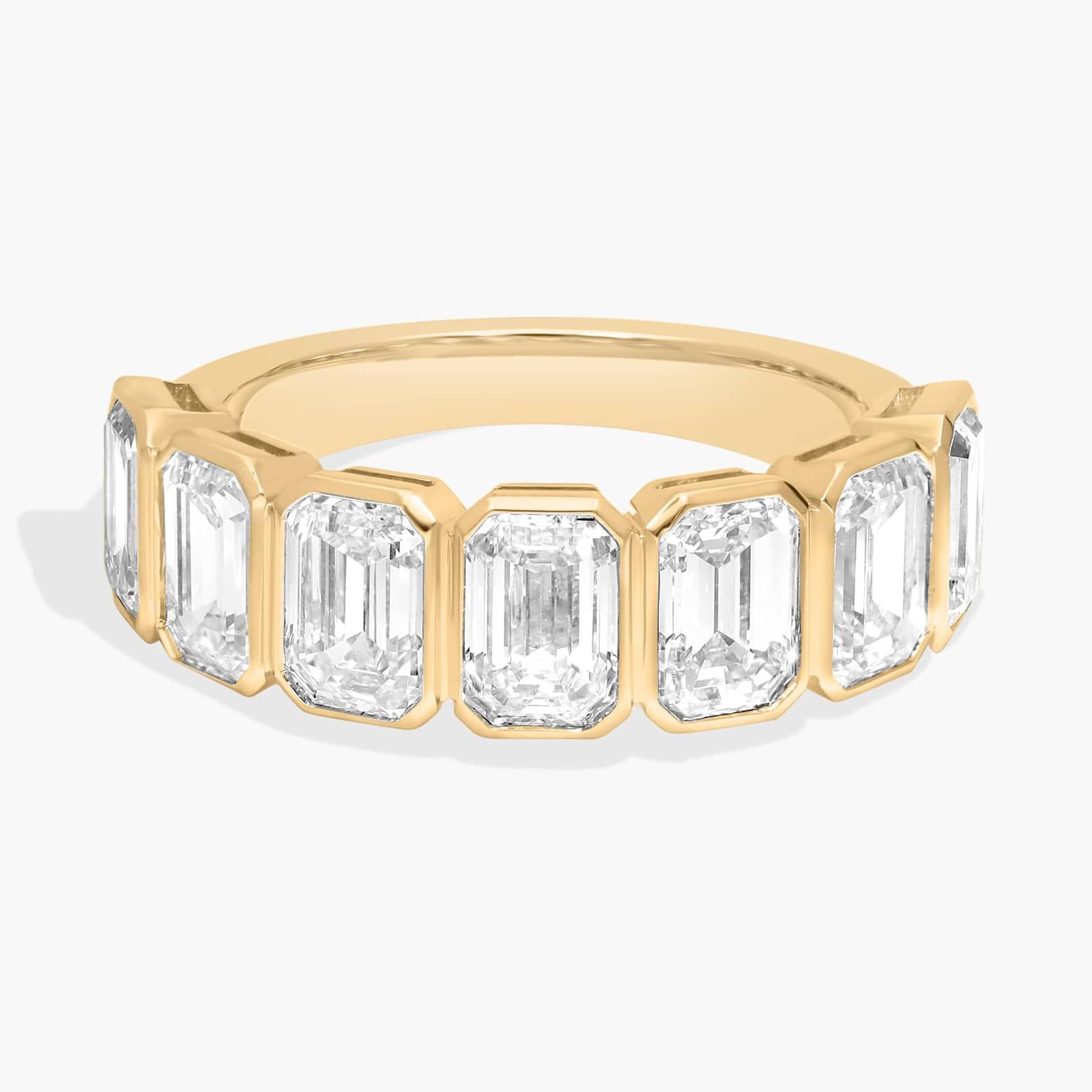Seven sparkling emerald cut bezel set diamonds adorn this anniversary ring, representing style and promise. Gift this 3.5 CTW diamond and 14k yellow gold ring to celebrate an anniversary or add it to your own collection for lasting shine.