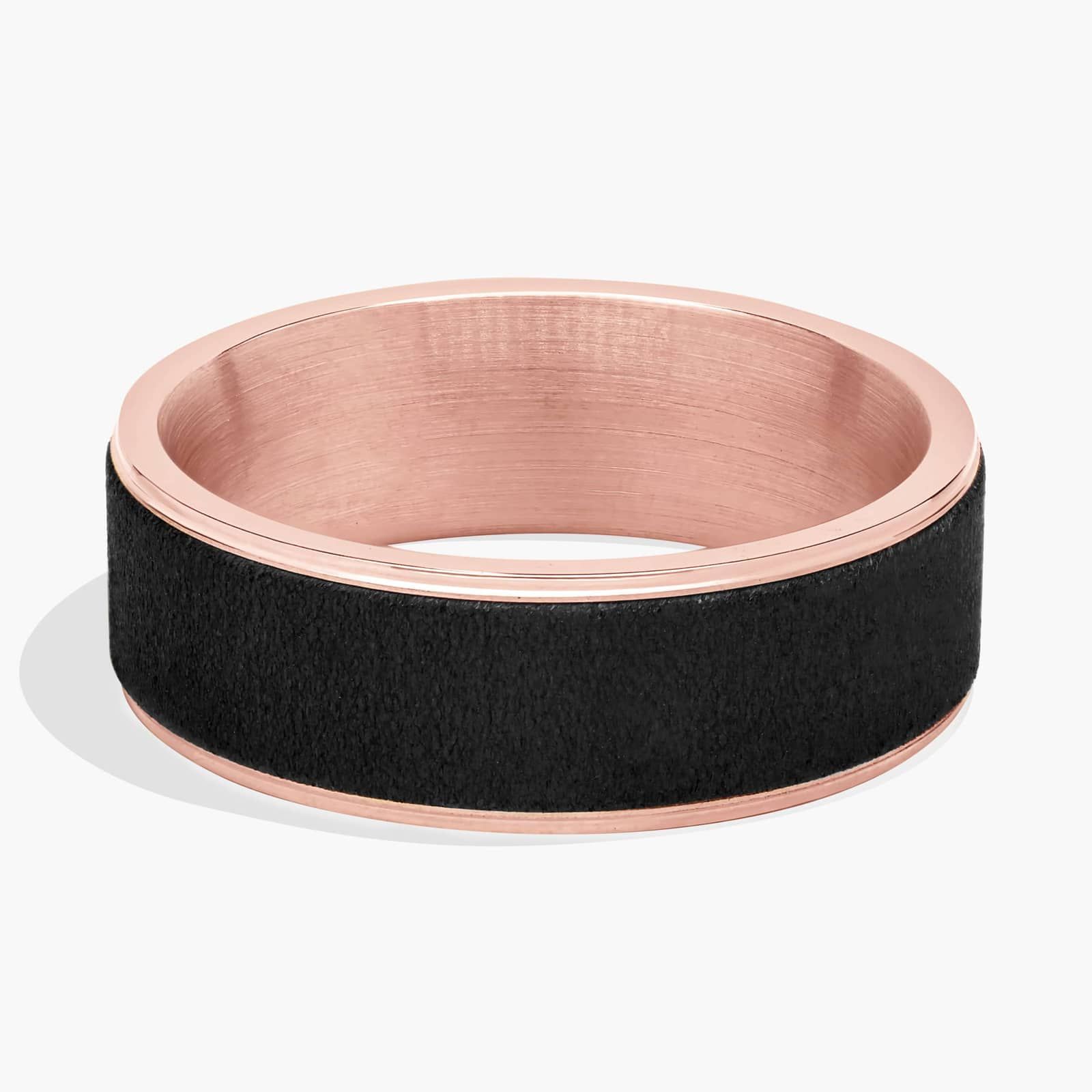 Tantalum and contrasting 14k rose gold give this wedding band a dynamic design. The added wirebrush finish makes it a unique ring for telling your love story.